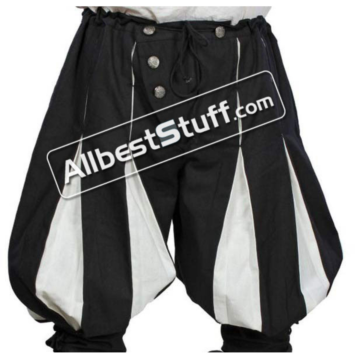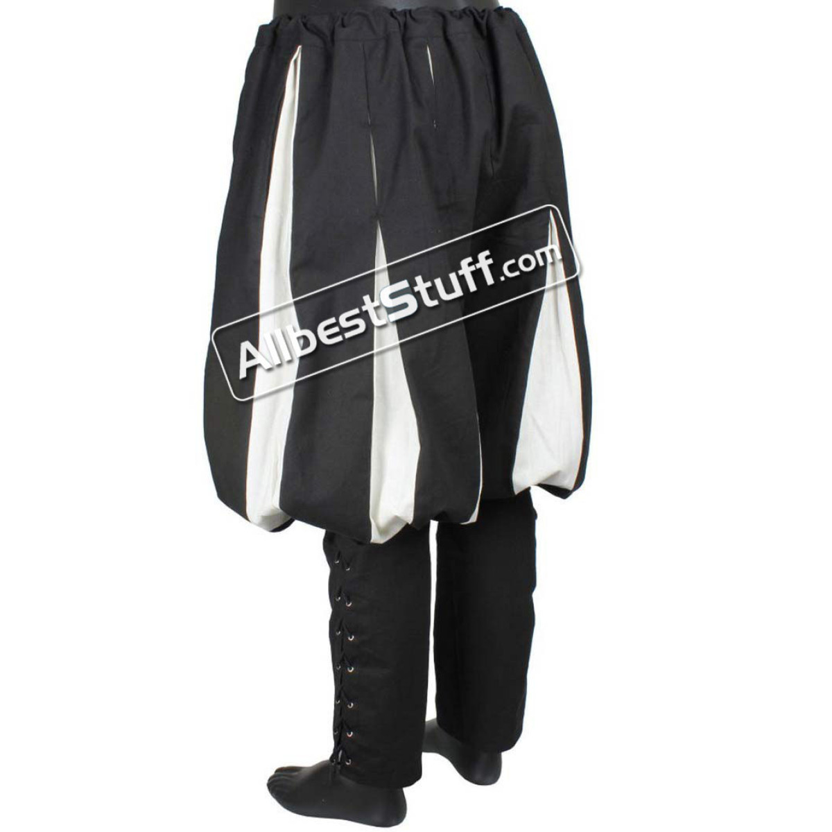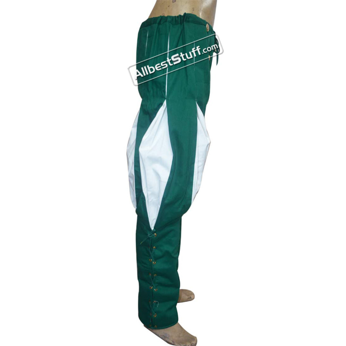 100% Cotton These medieval Landsknecht pants are made of cotton. From the knees down they were laced and can be individually adapted to the calf. Buttons and drawstring on the waistband ensure good grip.