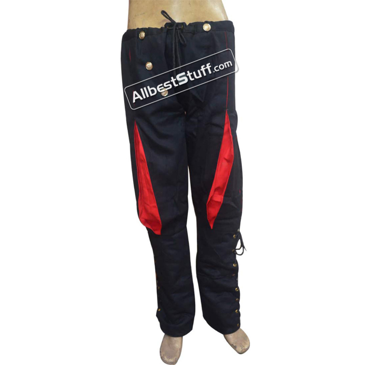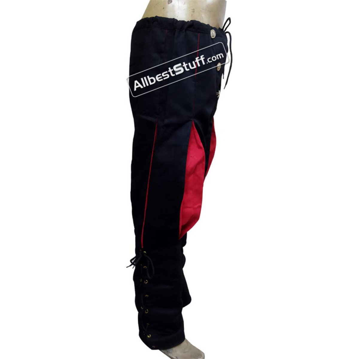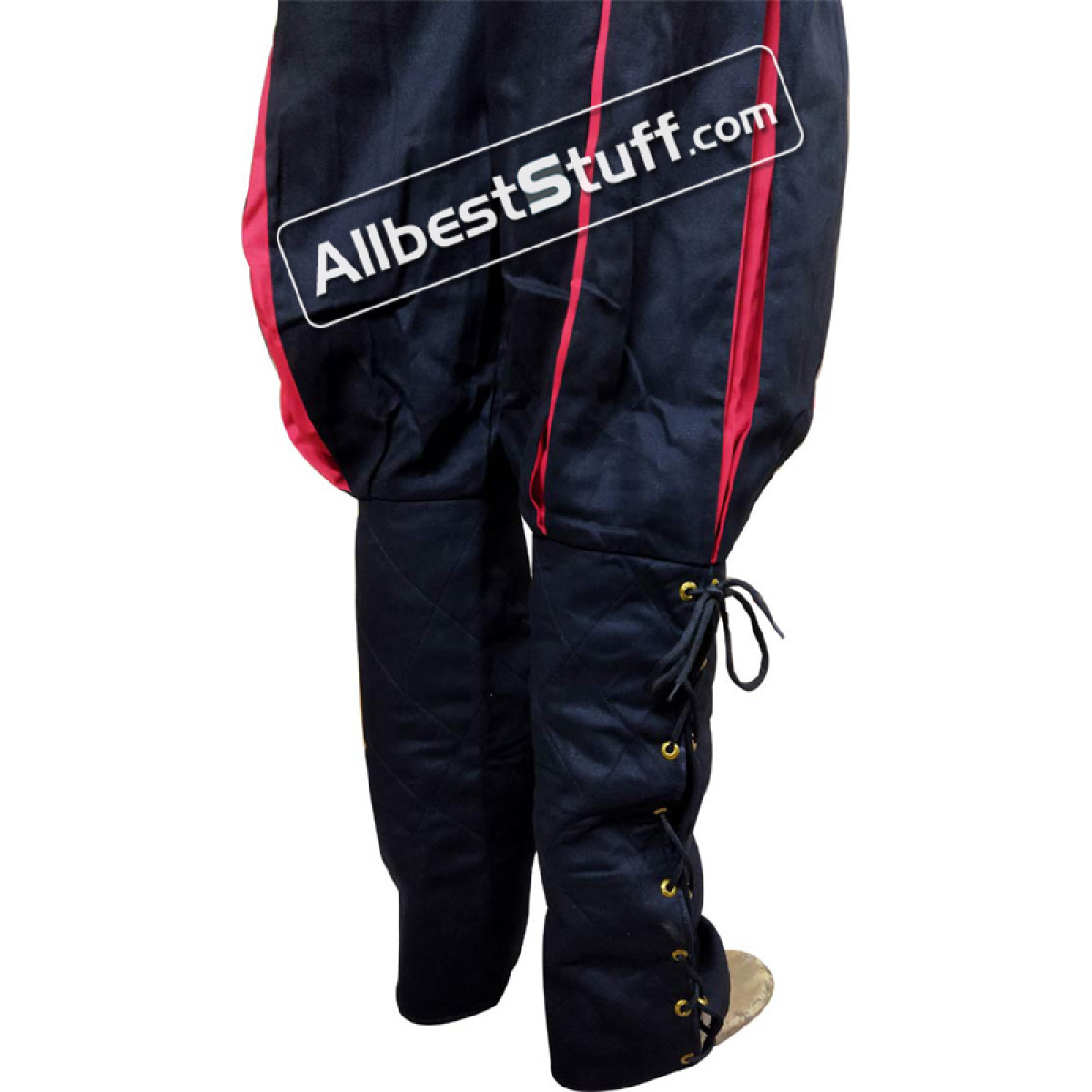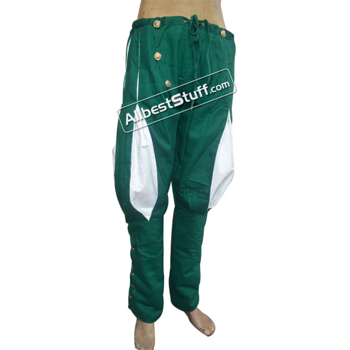 100% Cotton These medieval Landsknecht pants are made of cotton. From the knees down they were laced and can be individually adapted to the calf. Buttons and drawstring on the waistband ensure good grip.