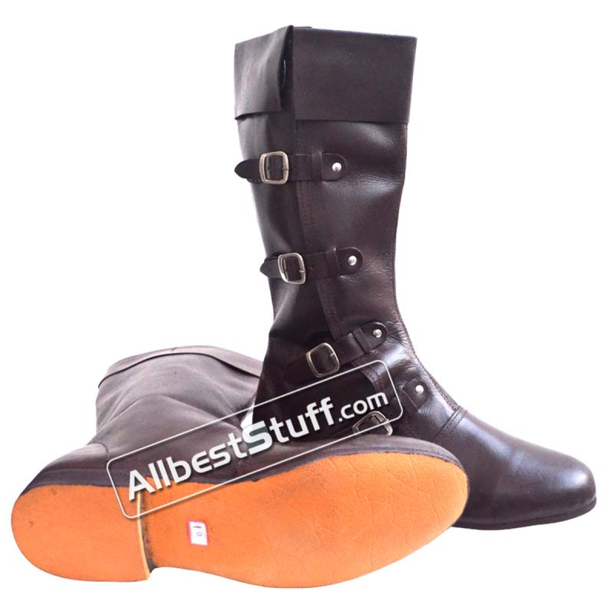Item Type: Medieval Leather Boot Long 4 BuckleApprox. Height from Sole: 12.5 inchesRubber Sole