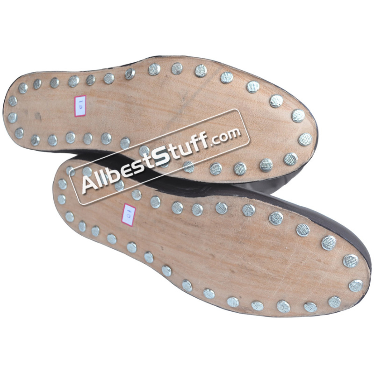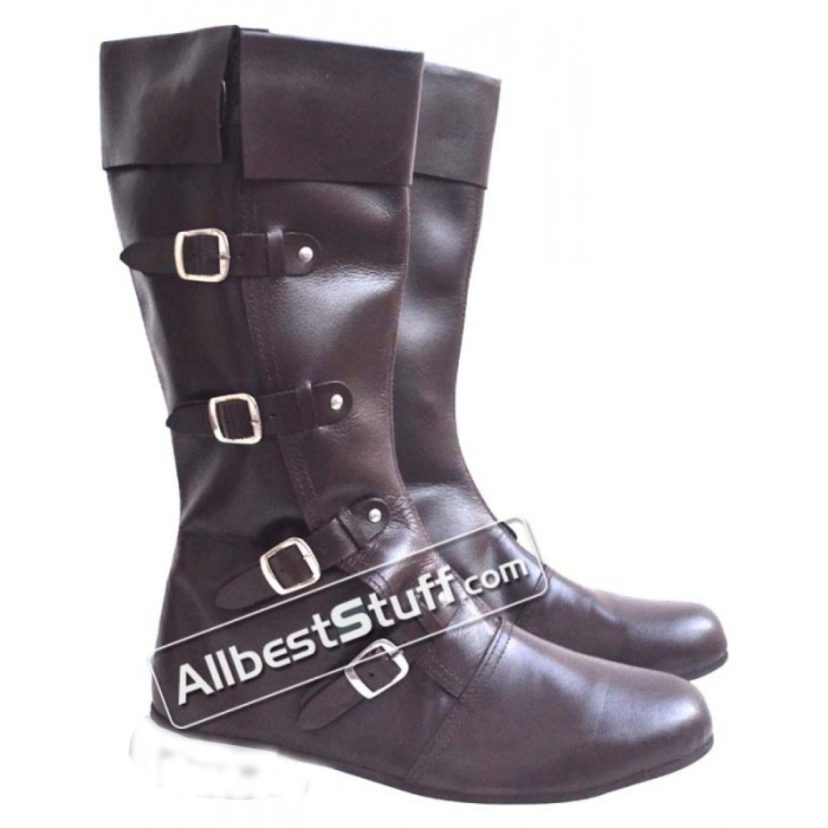 Item Type: Medieval Leather Boots Long 4 Buckle Brown Hobnail SoleHeight from Sole: 15 inchesLeather Hobnail Sole