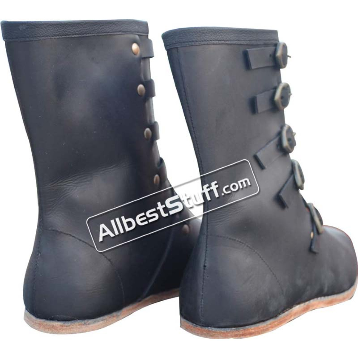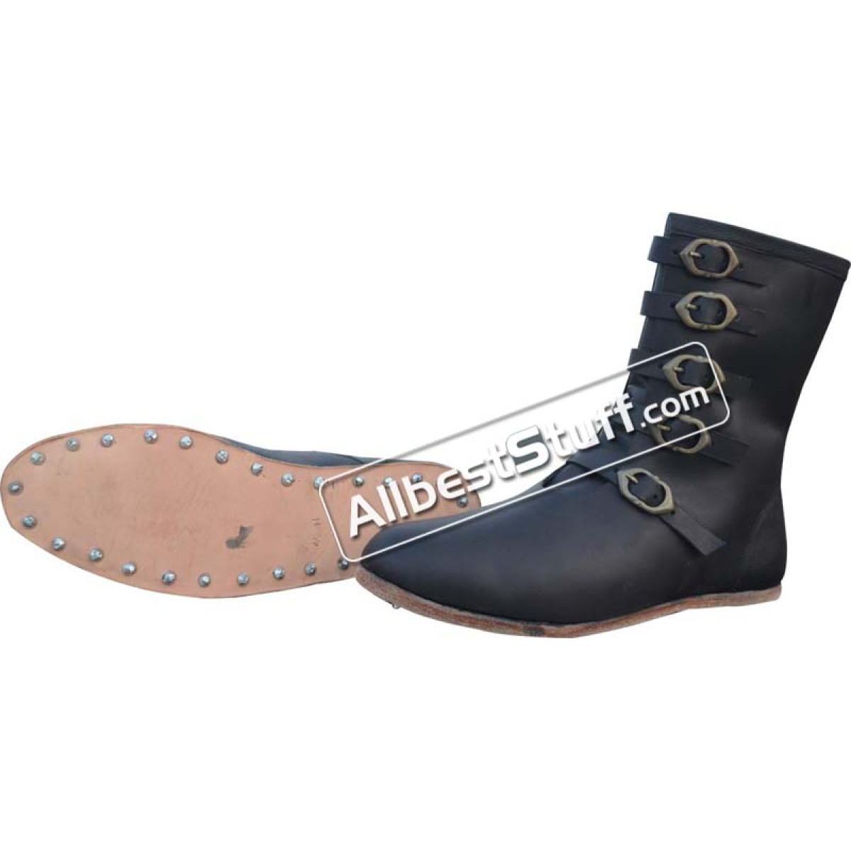 Item Type: Medieval Leather Boots Long 5 Buckle Hobnail Leather Sole .