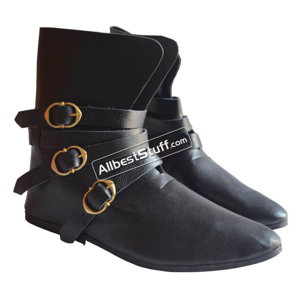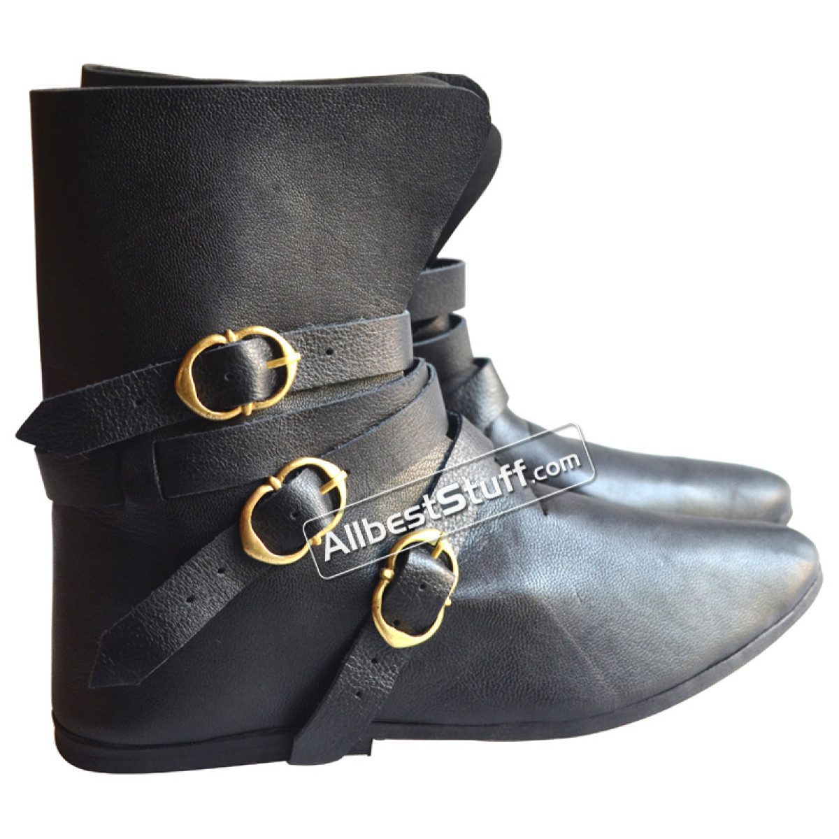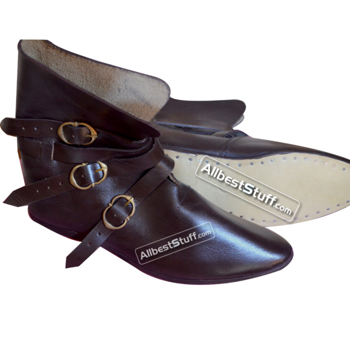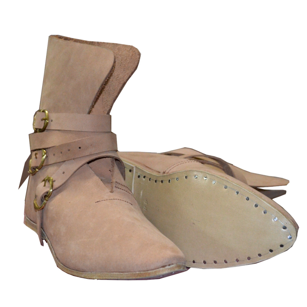 Item Type: Medieval Leather Shoes 3 Brass Buckle.