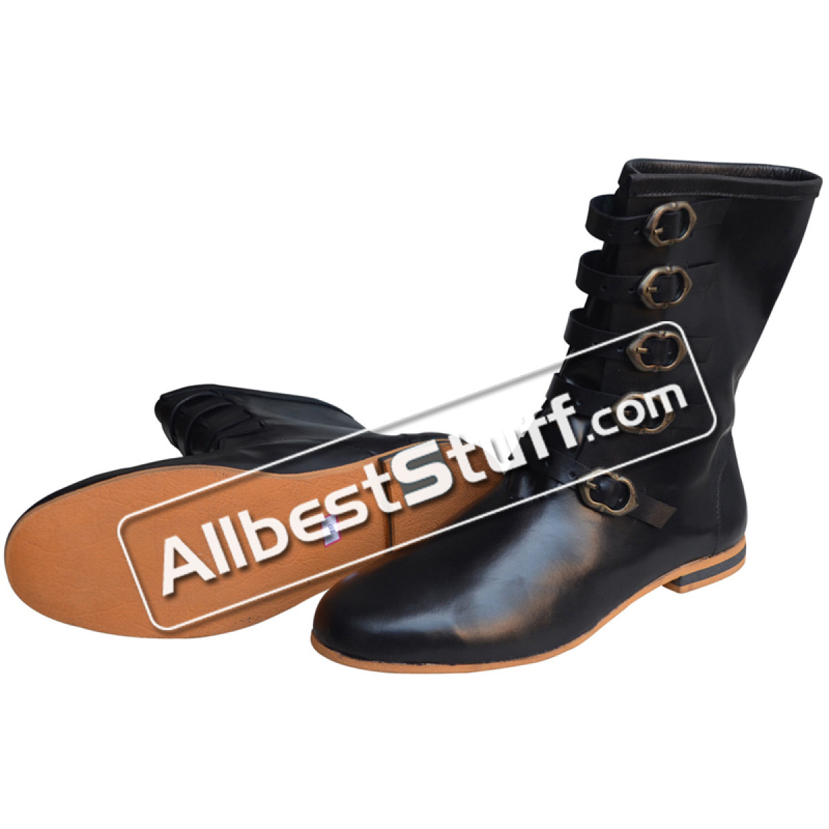 Item Type: Medieval Long Shoe 5 Brass Buckle Rubber Sole Leather Boots.