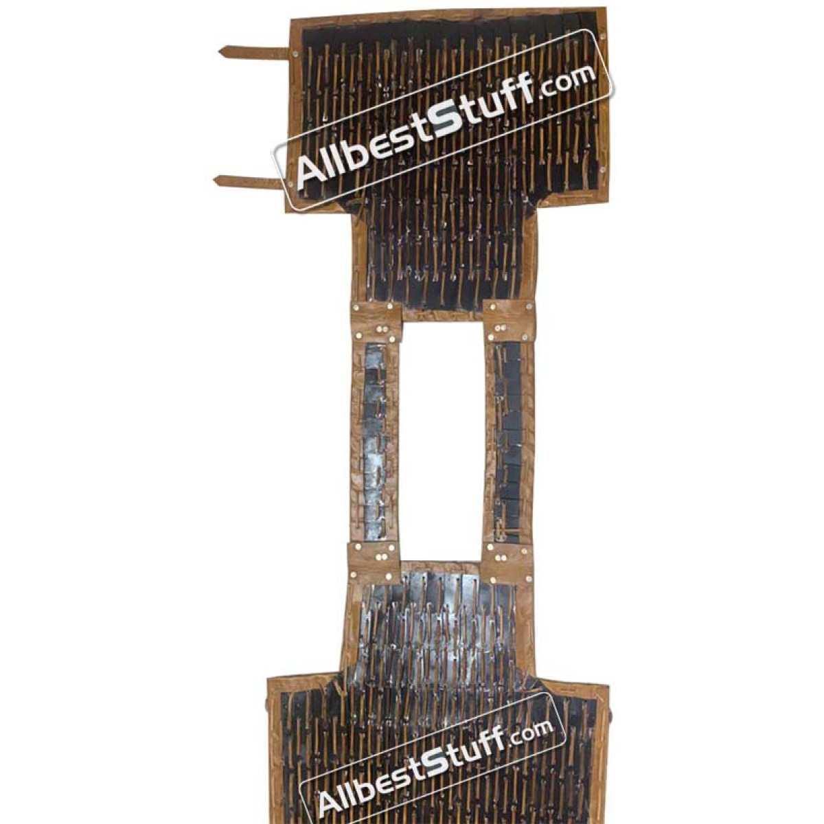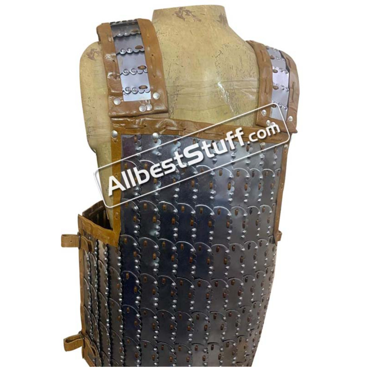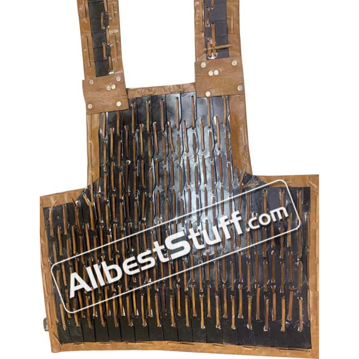 Item Type: Medieval Mild Steel Lamellar Plate ArmorSpecification:Chest Size- 44 inches adjustable to up to 48 inchesoverall length from Shoulder : 28 InchesSteel Thickness 20-22 Gauge Mild Steel