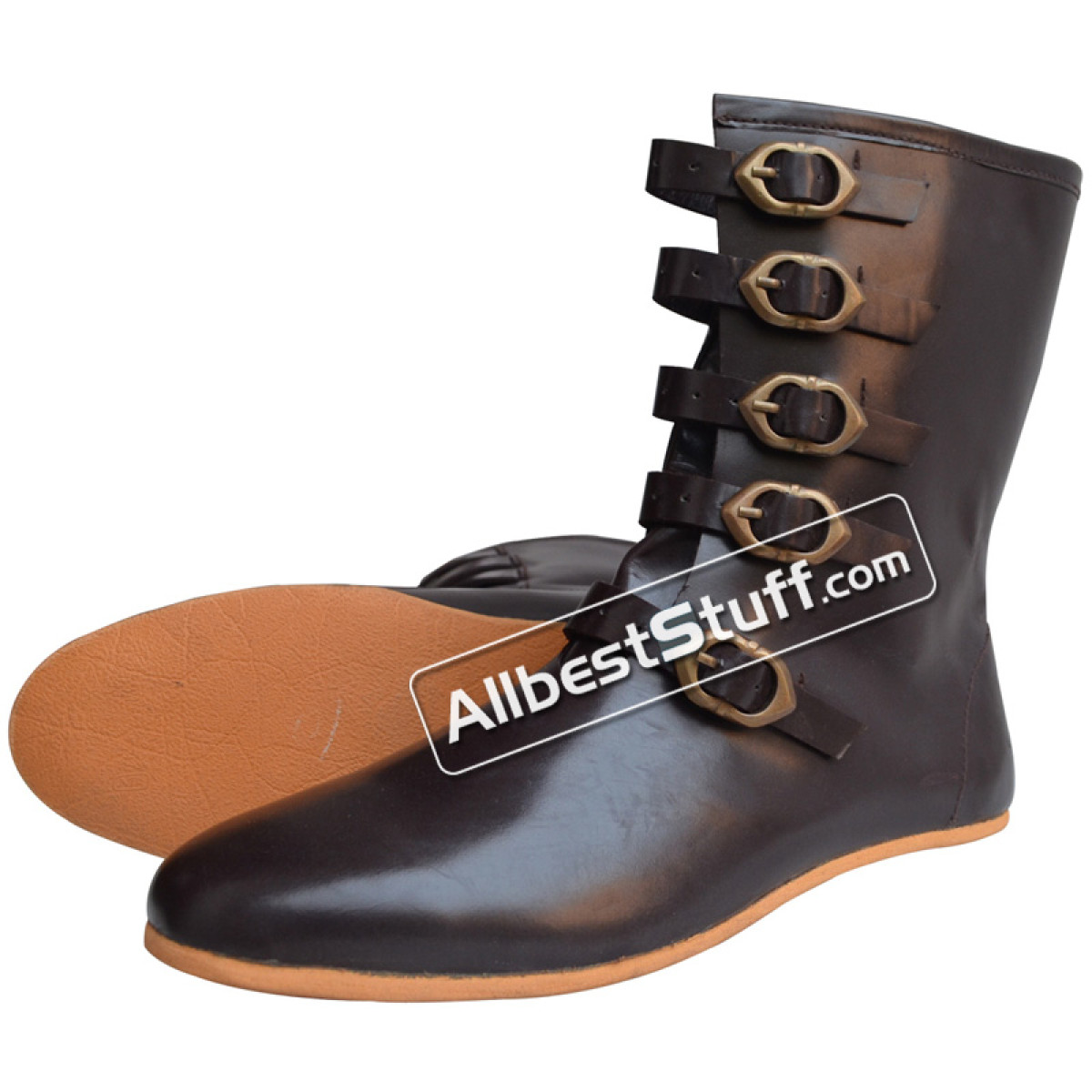 Item Type: Medieval Leather Boot 5 Brass Buckle .