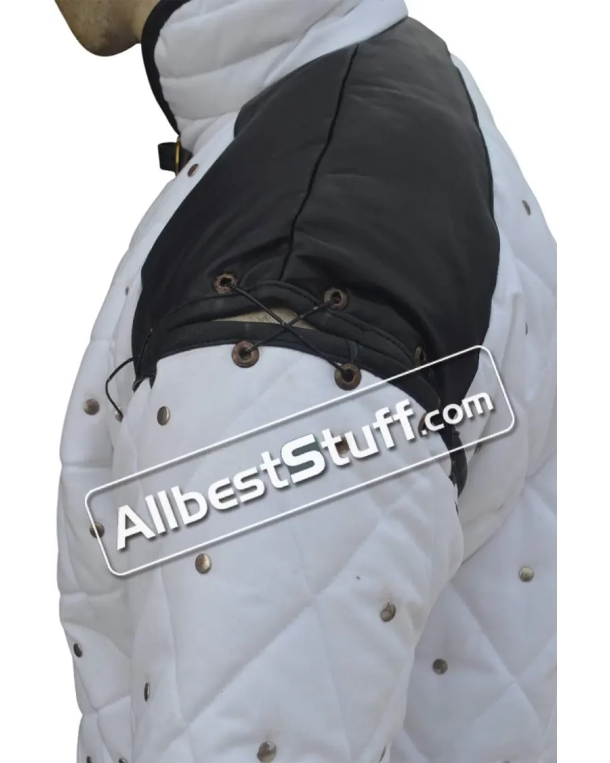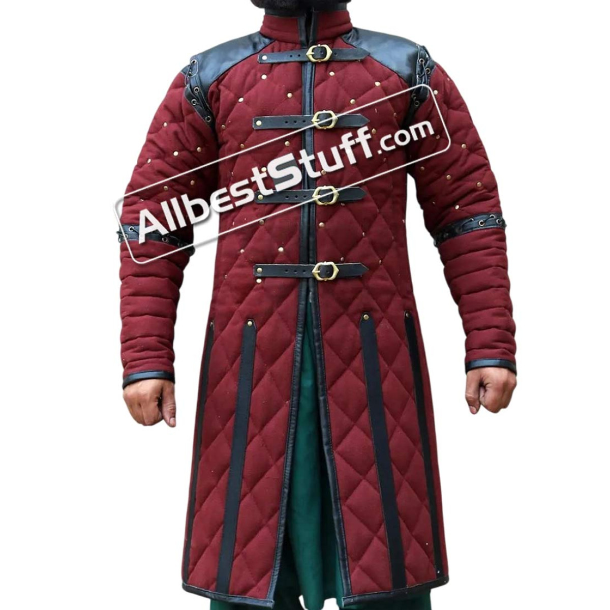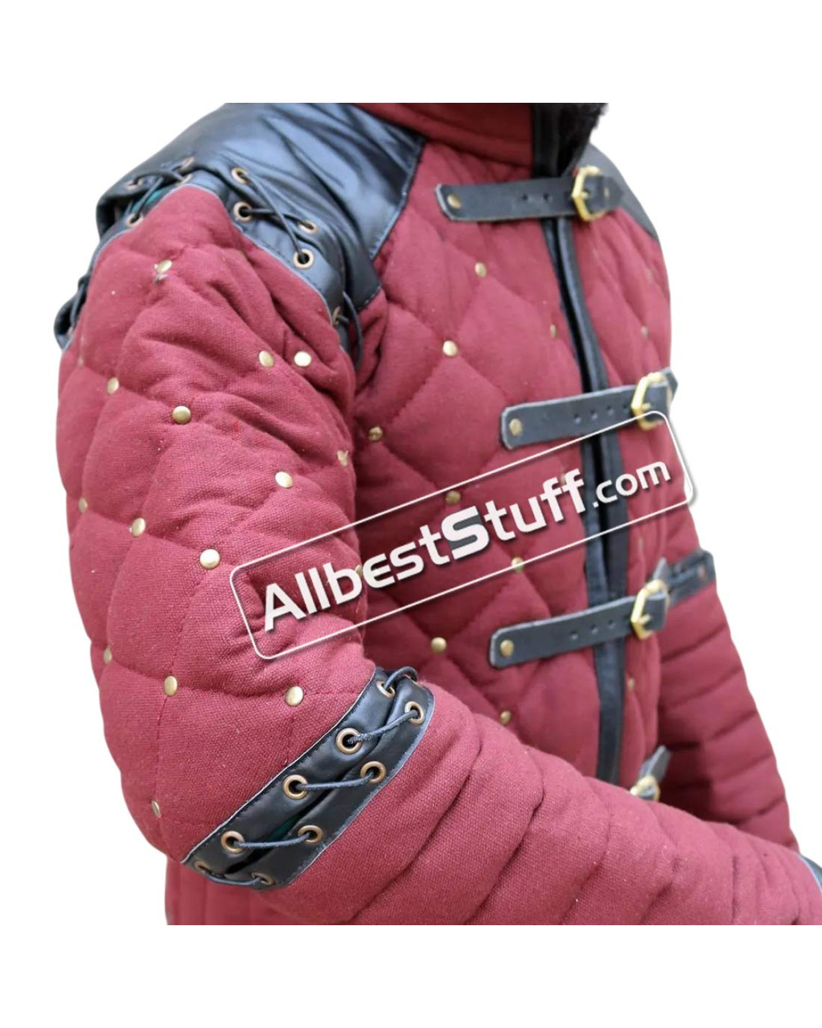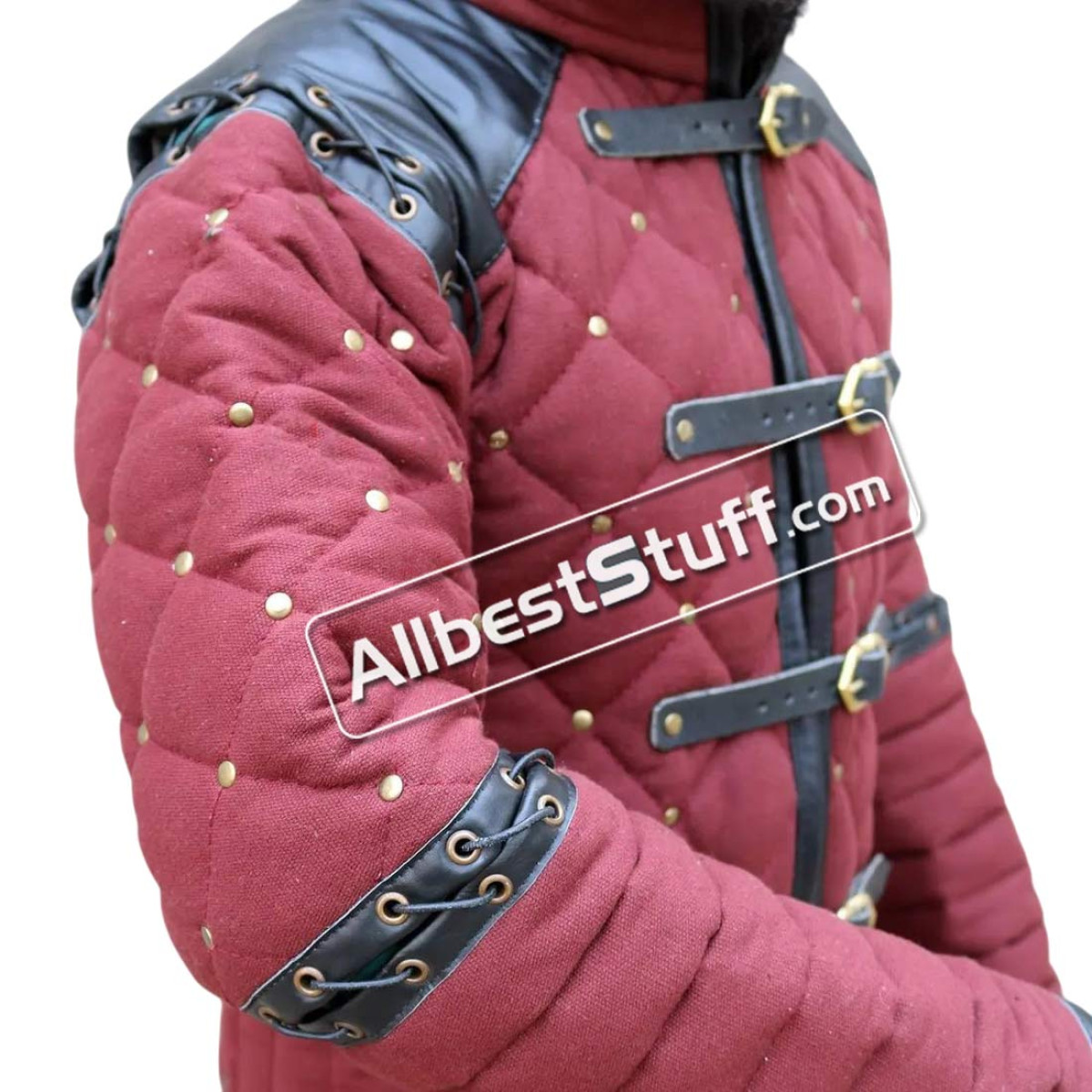 Full Sleeve Padded Gambeson made from Quality Cotton. The padded armor includes a gambeson and sleeves in a versatile set that can be worn in different combinations. The padded gambeson can be worn under any kinds of armor. The tall collar increases comfort around the neck, as well. The Armor padding is stitched in a pattern that allows mobility and keeps the padding in place. Metal eyelets run along the edges of the arm holes of the sleeveless gambeson, allowing the addition or removal of sleeves as desired. Completely leather edged.