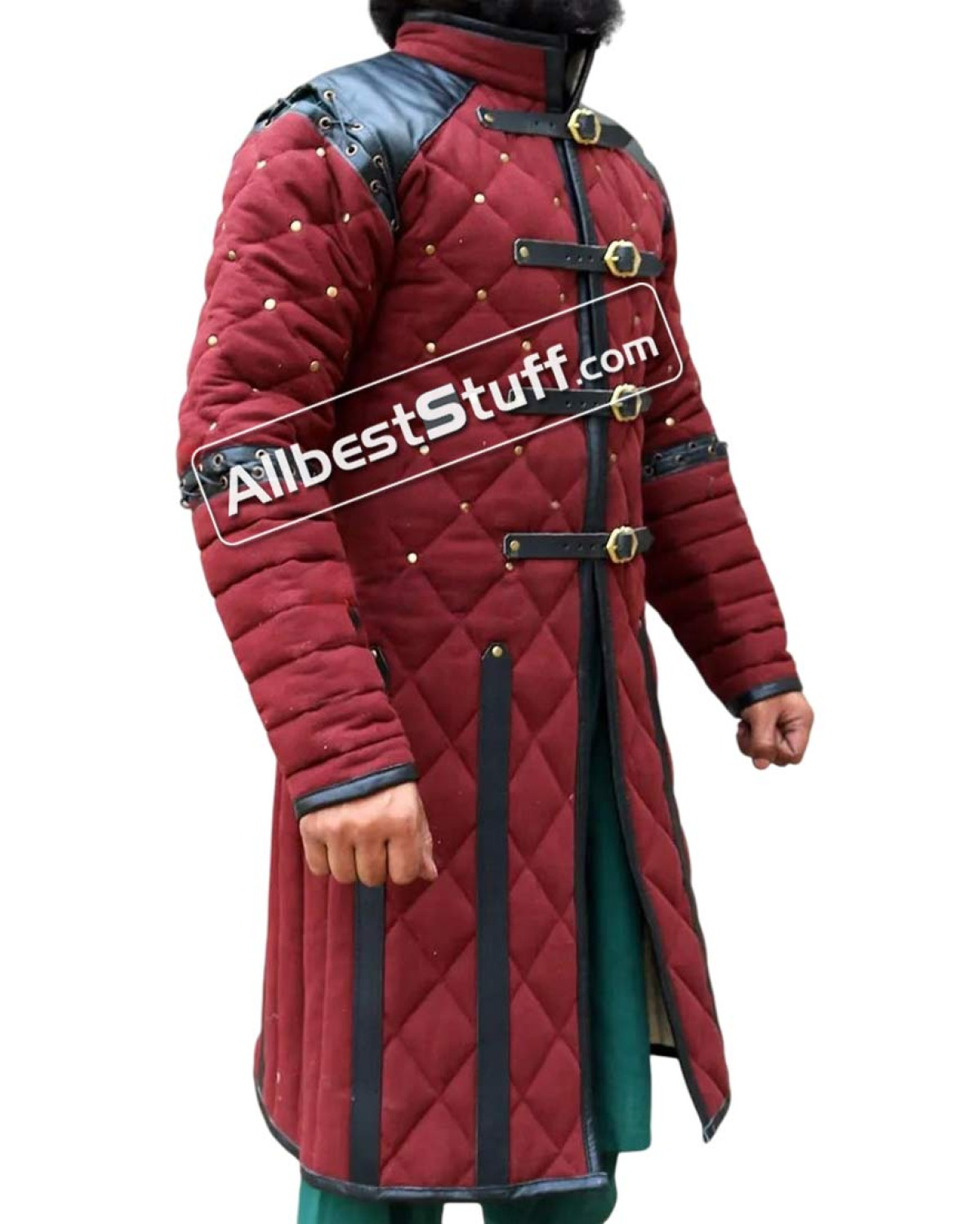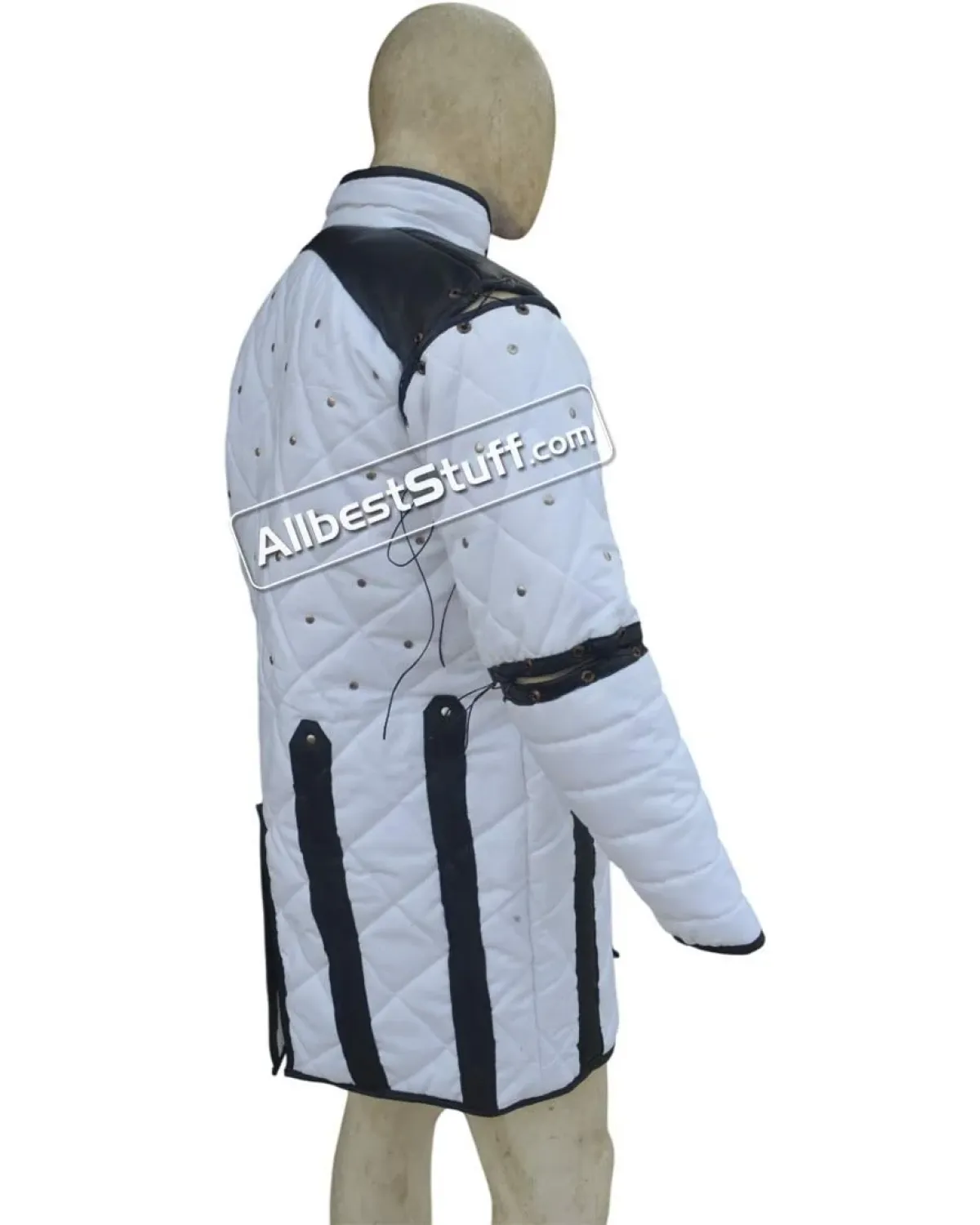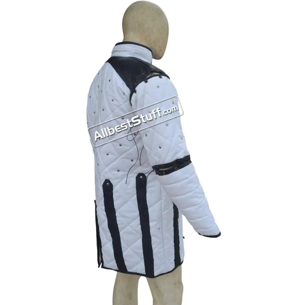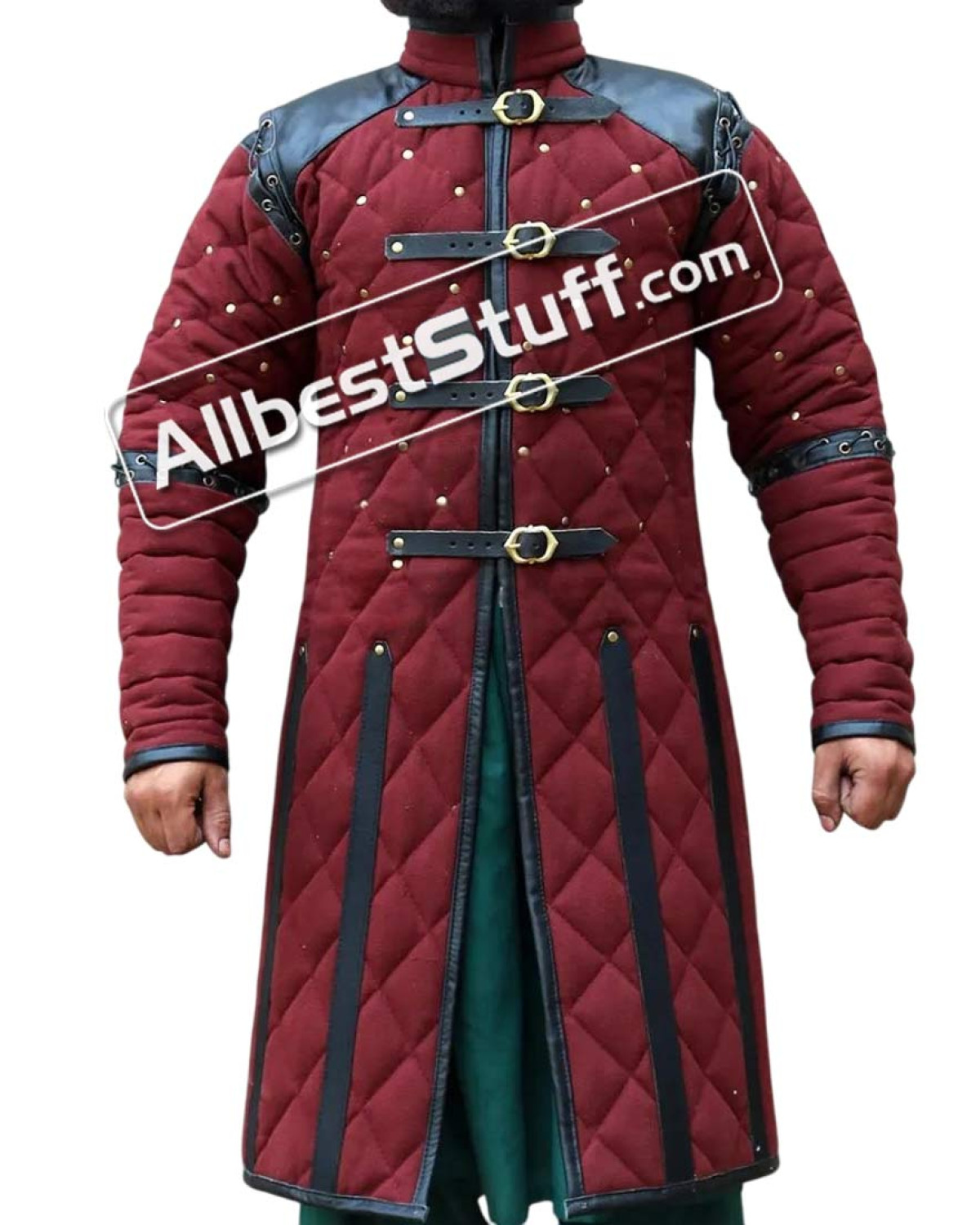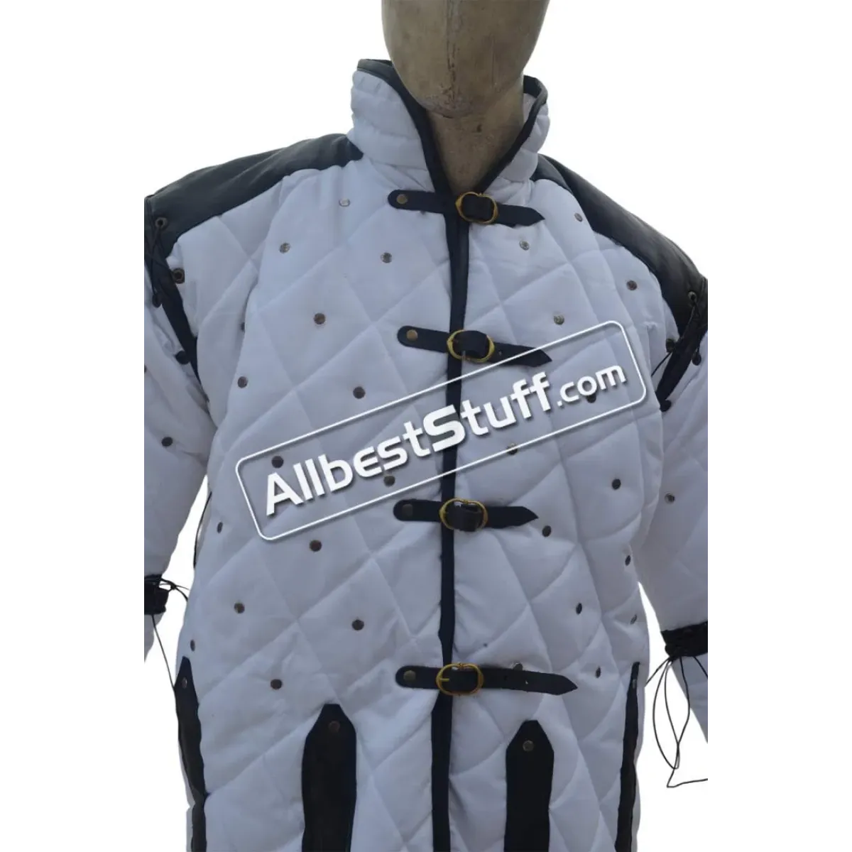 Full Sleeve Padded Gambeson made from Quality Cotton. The padded armor includes a gambeson and sleeves in a versatile set that can be worn in different combinations. The padded gambeson can be worn under any kinds of armor. The tall collar increases comfort around the neck, as well. The Armor padding is stitched in a pattern that allows mobility and keeps the padding in place. Metal eyelets run along the edges of the arm holes of the sleeveless gambeson, allowing the addition or removal of sleeves as desired. Completely leather edged.