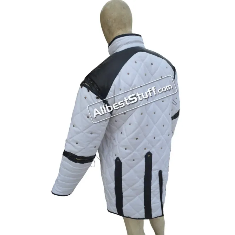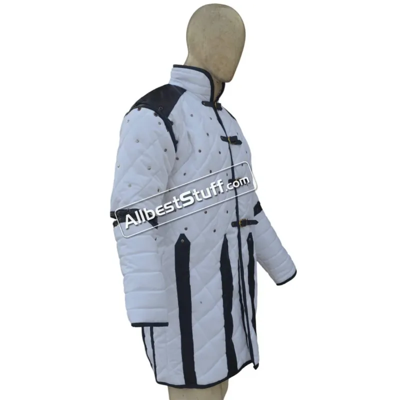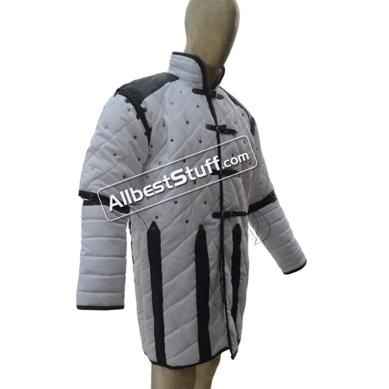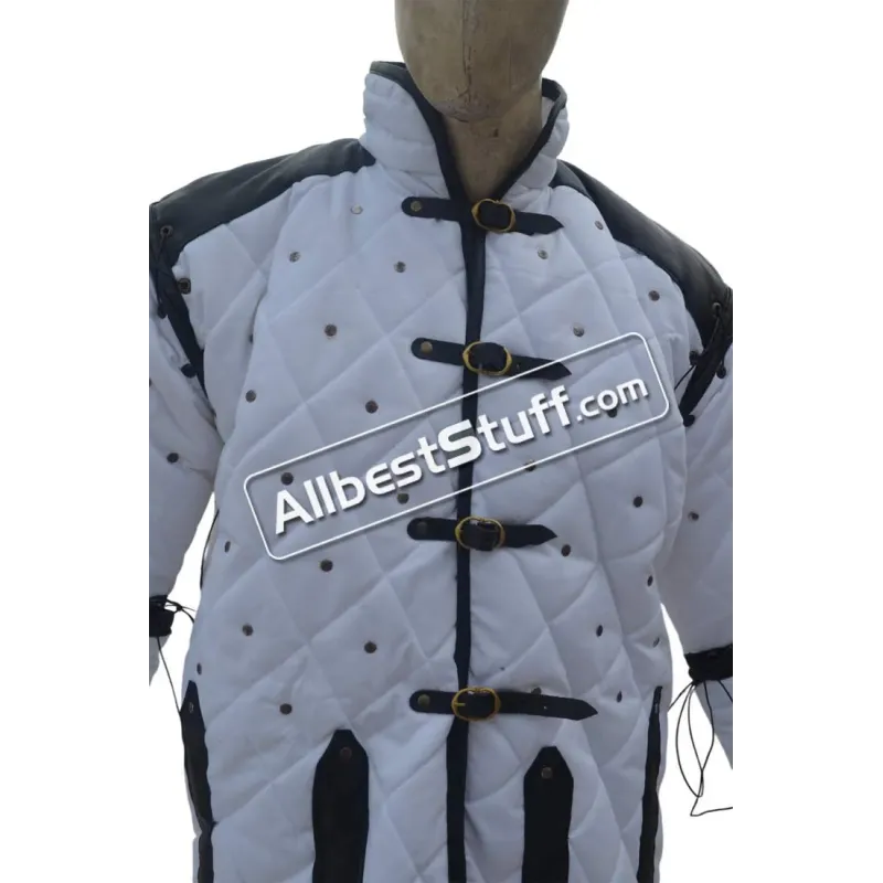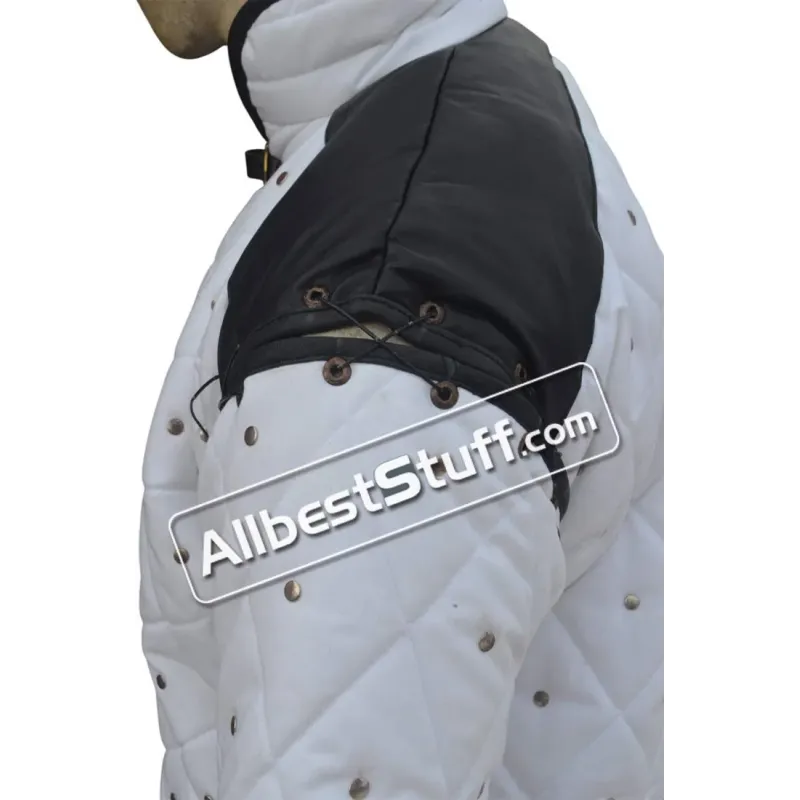 Full Sleeve Padded Gambeson made from Quality Cotton. The padded armor includes a gambeson and sleeves in a versatile set that can be worn in different combinations. The padded gambeson can be worn under any kinds of armor. The tall collar increases comfort around the neck, as well. The Armor padding is stitched in a pattern that allows mobility and keeps the padding in place. Metal eyelets run along the edges of the arm holes of the sleeveless gambeson, allowing the addition or removal of sleeves as desired. Completely leather edged.