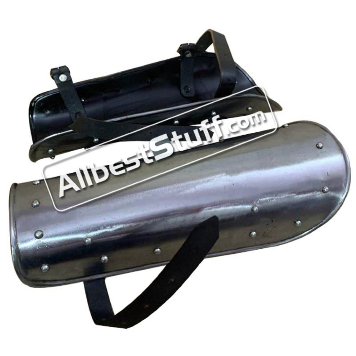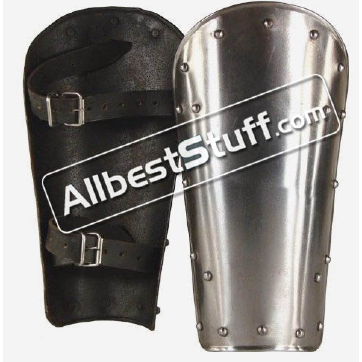 This Warrior Shin Protection protects the shins from sword blows and other impacts. The guards have leather straps with buckles for a perfect fit. The Warrior Shin guards are made from 18 Gauge steel with no sharp edges making them safe for LARP weapons.