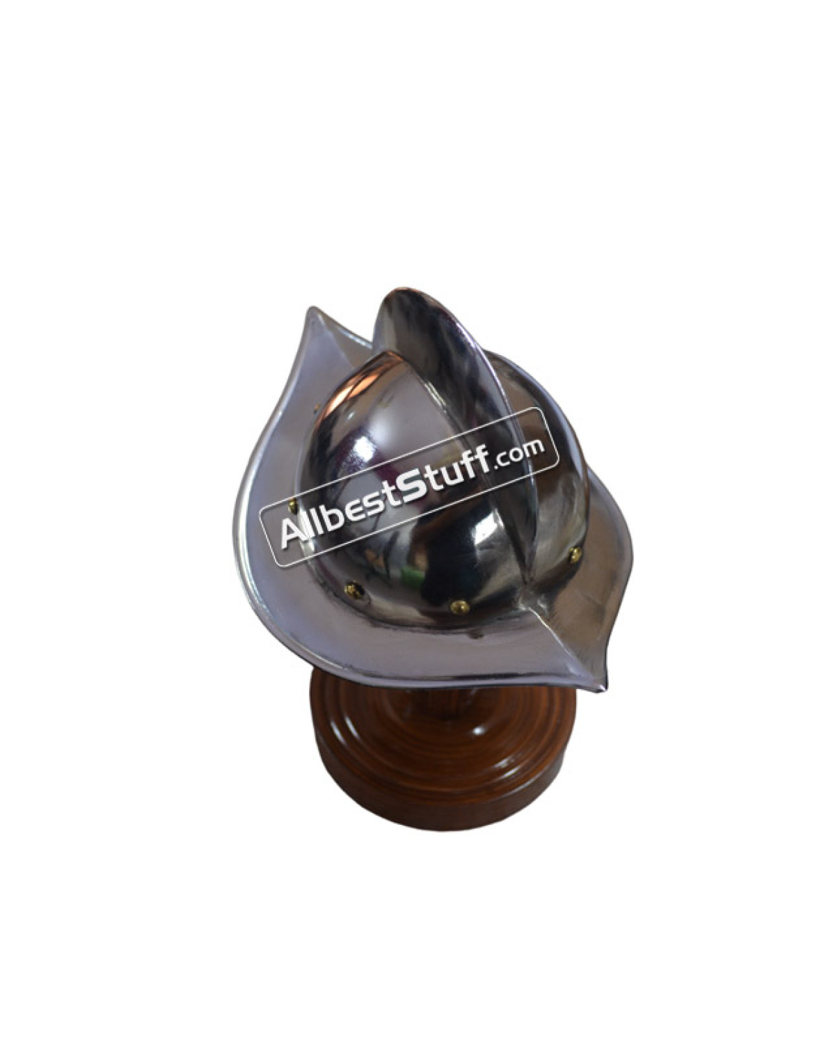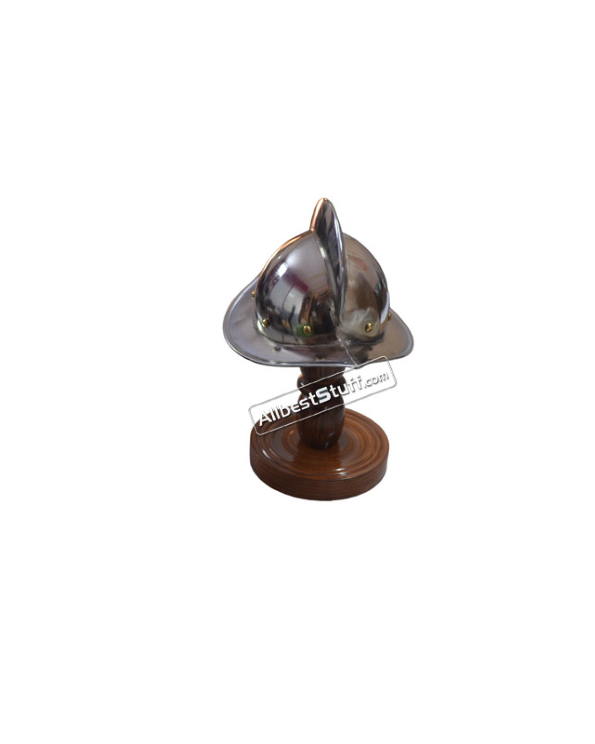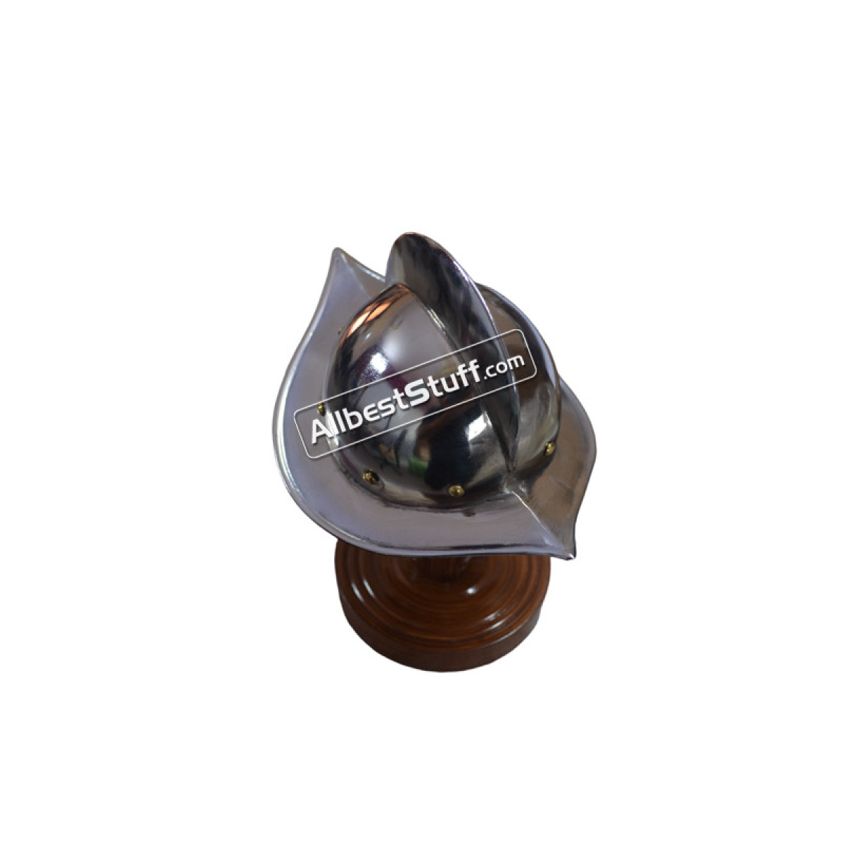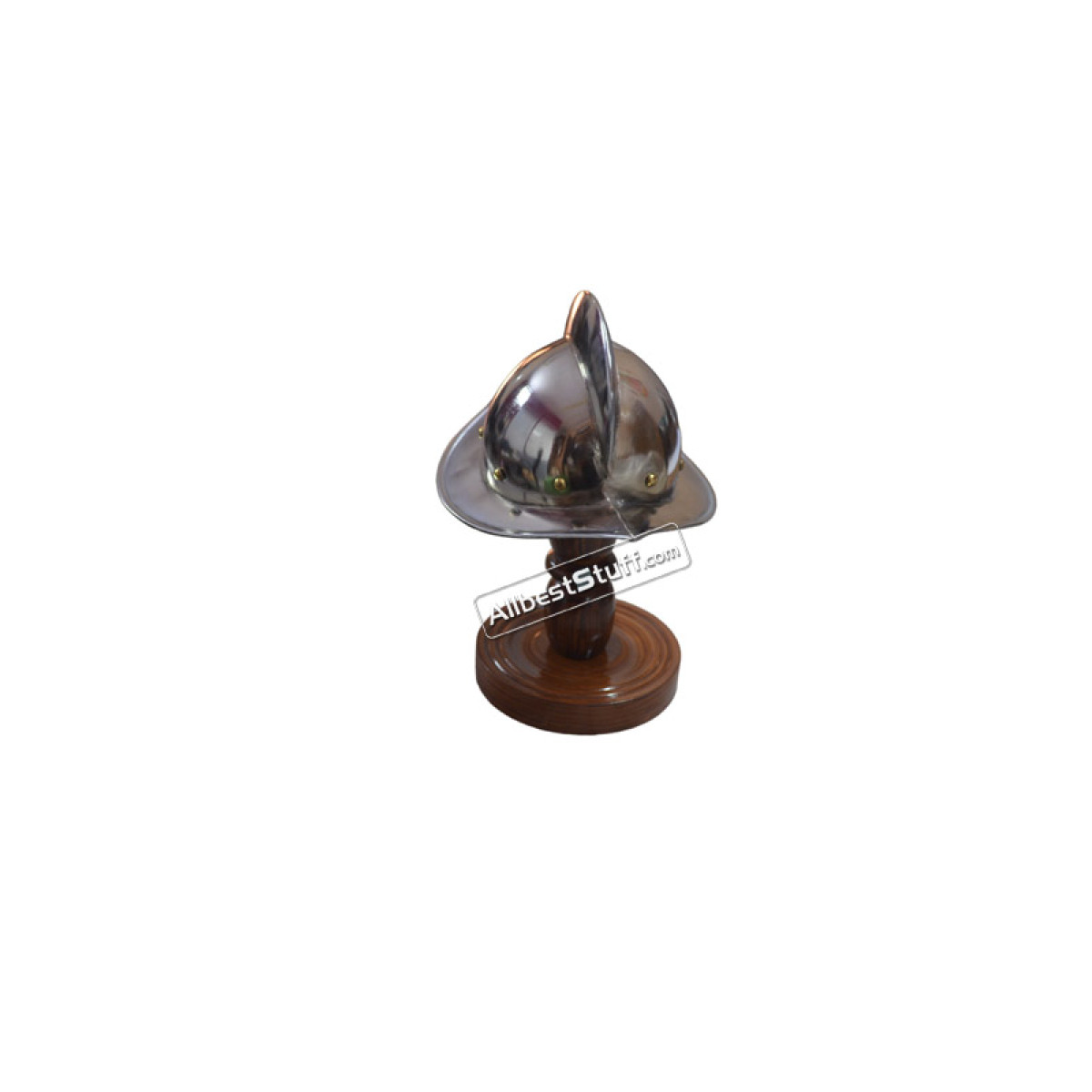 Specifications:Material: Mild Steel with Brass ordinationFront to Back : 7 cmEar to Ear: 7 cmApprox. Height : 11 cmHand crafted from steel and brassHelmet Stand: 1 pcs includedQuantity: Total 5 pcs and 5 wooden stand in the box