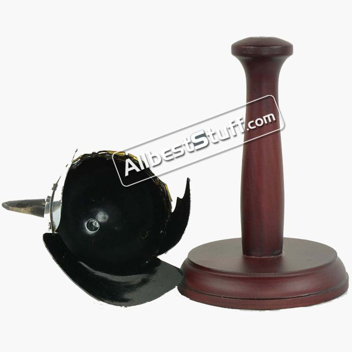 Specifications:Material: Mild Steel with Brass ordinationFront to Back : 7 cmEar to Ear: 7 cmApprox. Height : 10.5 cmHand crafted from steel and brassHelmet Stand: 1 pcs includedQuantity: Total 5 pcs and 5 wooden stand in the box