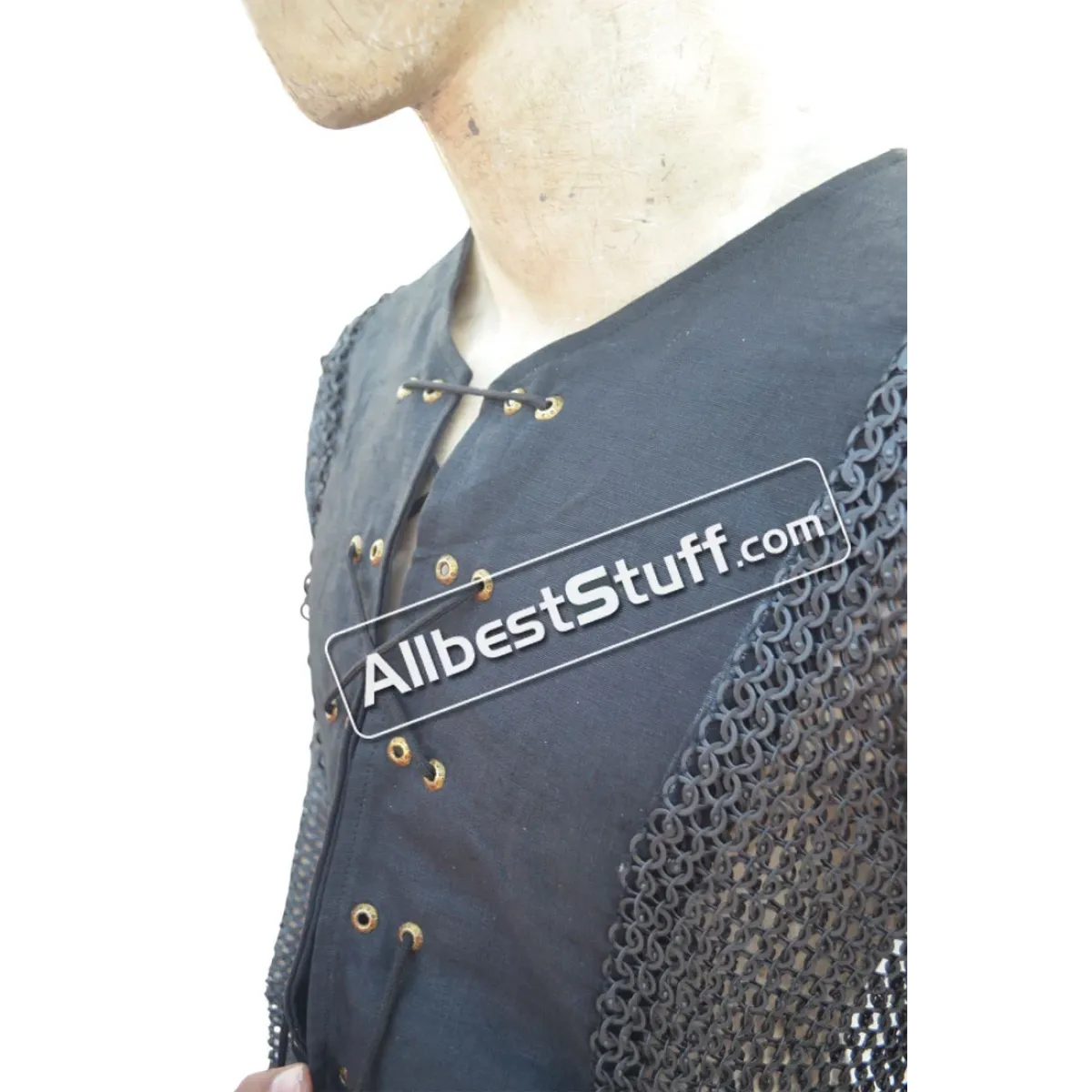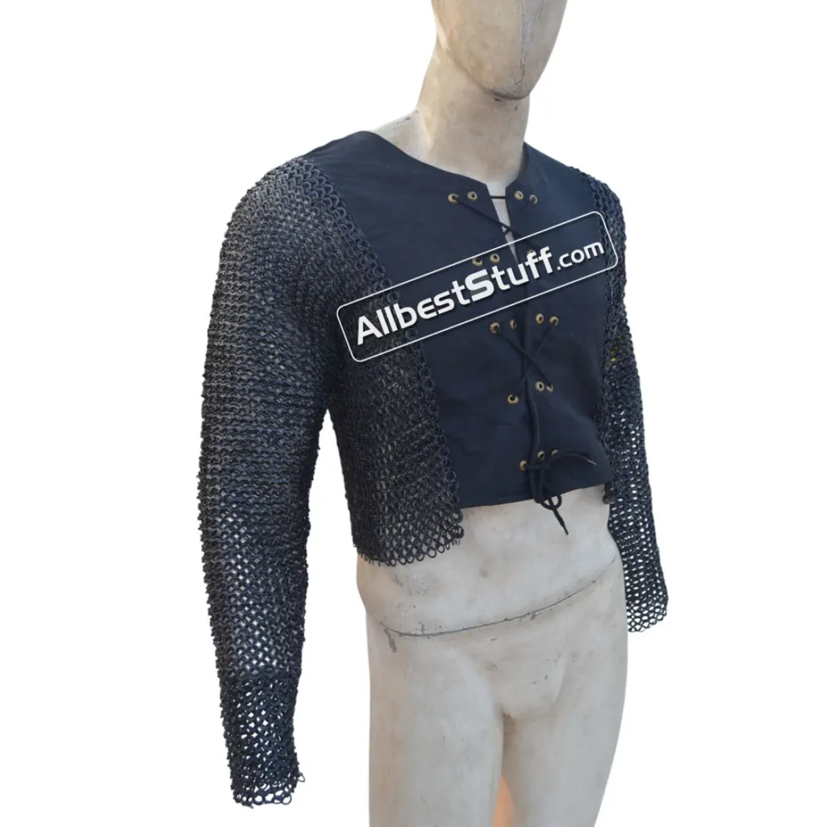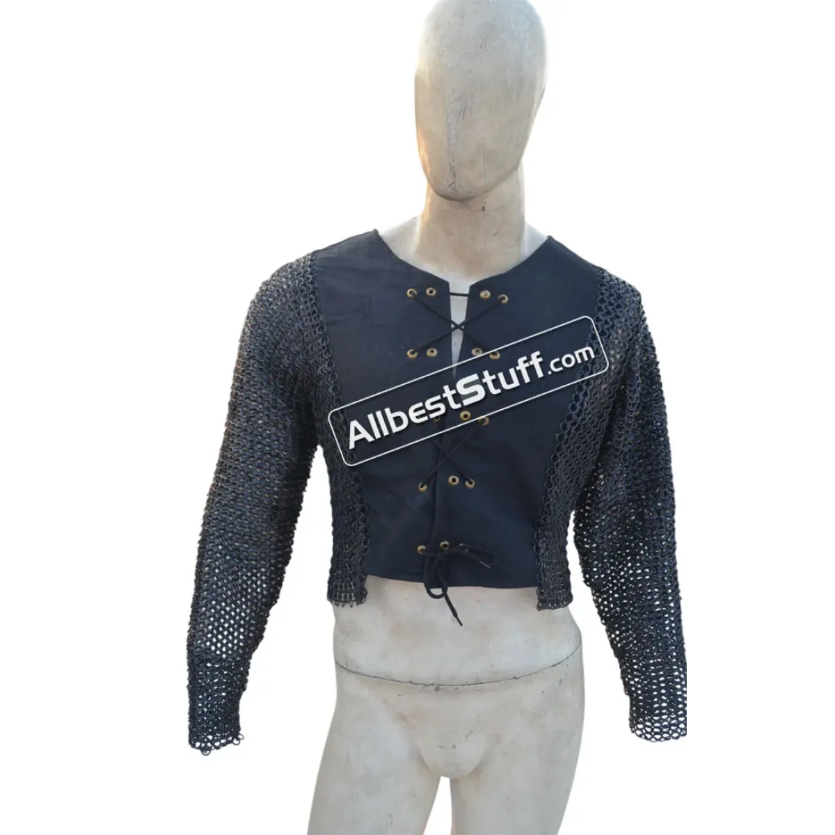 Specifications:Ring Type: 18 Gauge 8 MM Flat Dome Riveted Ring with alternating solid ringMaterial: Made from Mild Steel WireChest Size: 45 inches, comfortable fit for 40-41 inches with padding underneathBack is closed with the garment while front is open 7-8 inches, Choose Linen OR cotton fabric, comes with round eyelet with front laceSleeve Style: Fully ClosedLength of Sleeve: 20 inches measured from under the armpit area to wristSleeve Circumference at Armpit: 20 inches Overall Length from Shoulder: 17 inchesFinish: 03 Finish to choose fromNote: Double layered Garment stitched to chainmail, Outer fabric linen, inner fabric cotton