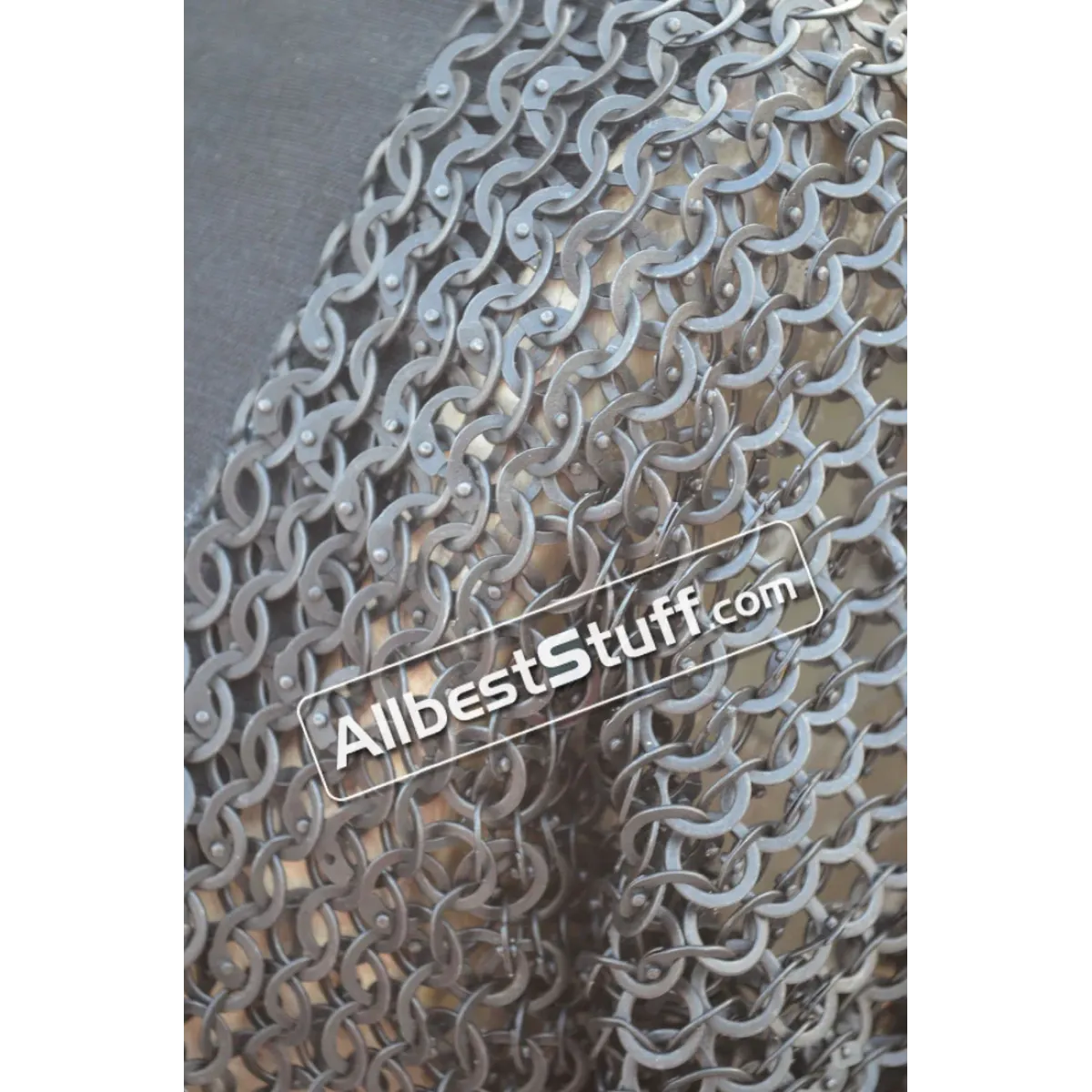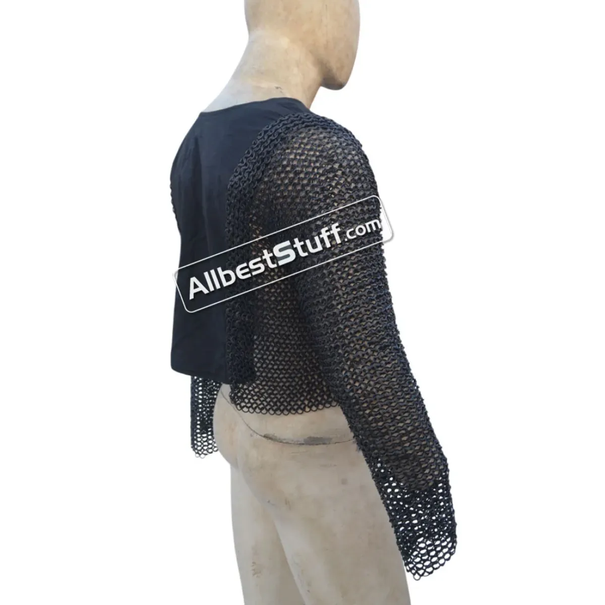 8 mm flat ring chainmail sleeve attached to the sleeveless garment vest, fully closed chainmail sleeve with protection to both sides of torso. Made with mild steel (Iron) 8 mm flat dome riveted ring with alternating solid ring.