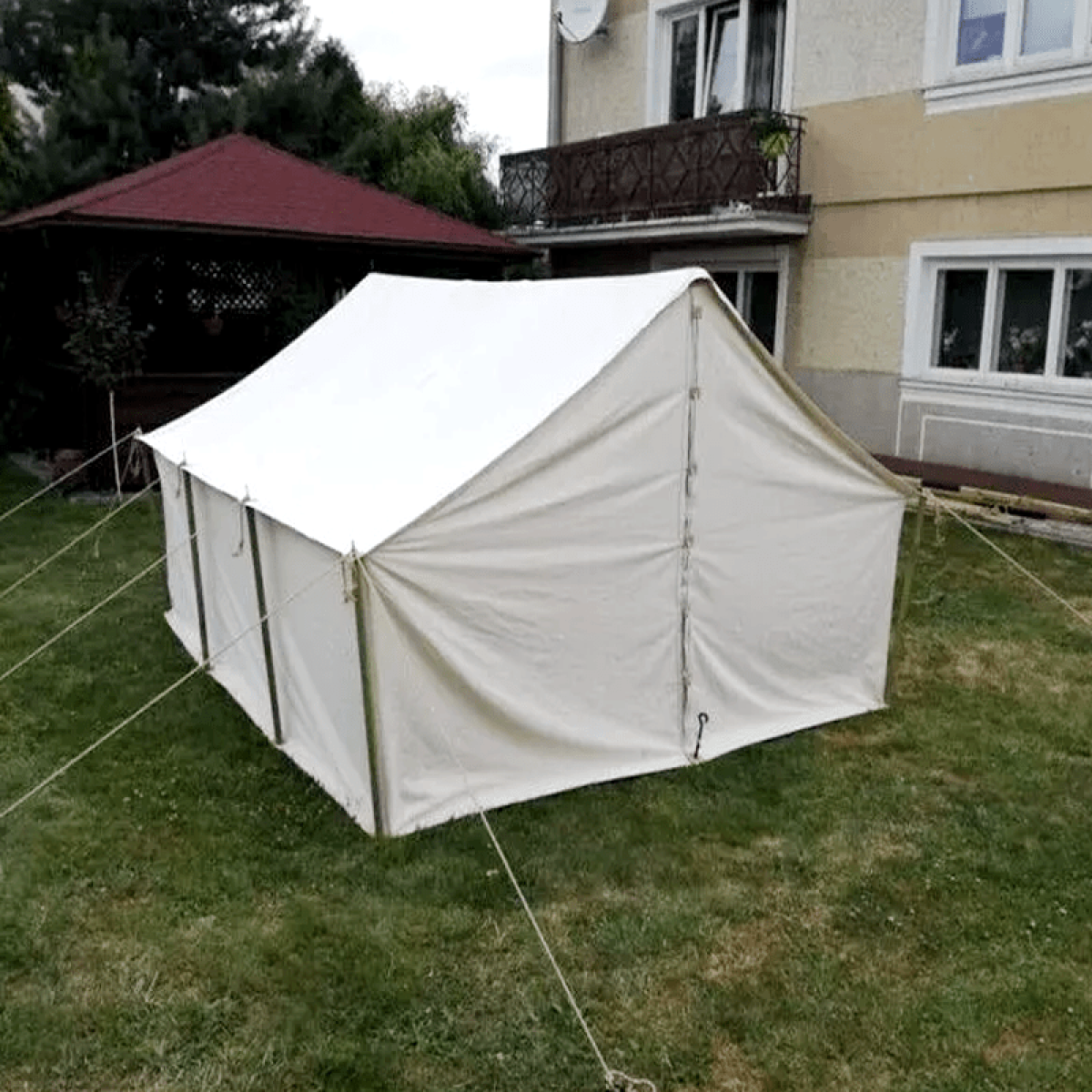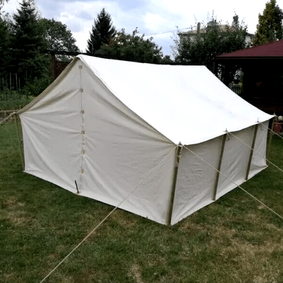 Dimensions: 4 X 4 M TentEntrance height: approx. 2.5 mInterior height: approx. 2.5 mSide height: approx. 1 mNatural (cotton, 350 g/m2)