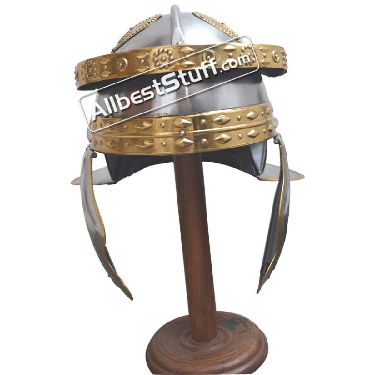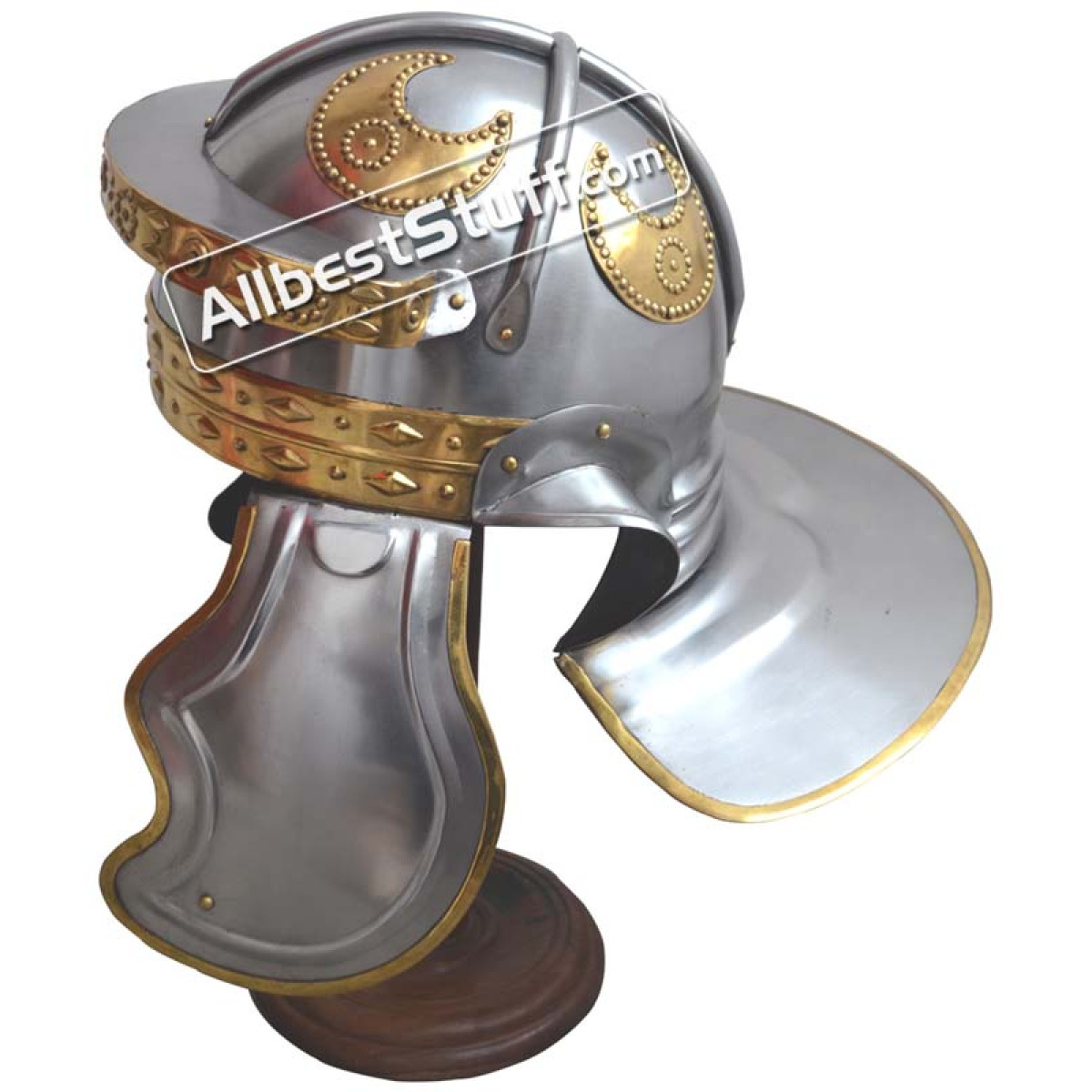 Roman Steel Imperial Italic 'G' Hebron Helmet With Brass Trim Made from 18 gauge steel. Its use of cross-bracing on the cranium top part of the helm is in keeping with a trend seen. This helmet is based off historical research and actual designs. Fully authentic and historical accurate. It is made out of 18 gauge steel and is wearable making it ideal for reenactments, role-playing, costumes, and will make for an impressive display piece
