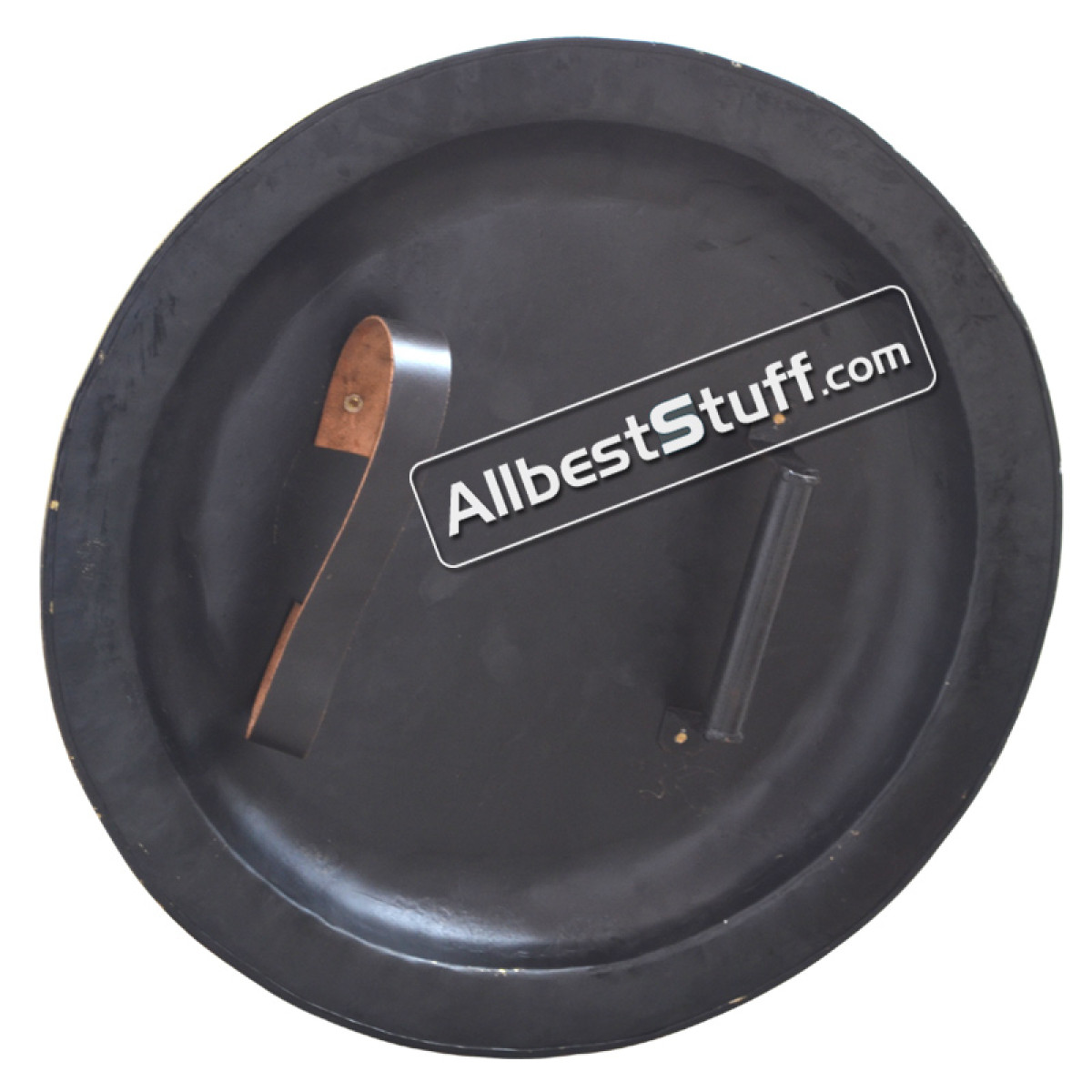 Item Type: Mild Steel Diameter : 24 inchesThickness : 0.50 inchesBack Portion has a steel handle as well as a leather strap for better gripA heavy 16 gauge metal shield easy to handle in a battle, protects against hard blows of enemy swords. Rough antique finish give your shield armor more authentic look in the battle field.