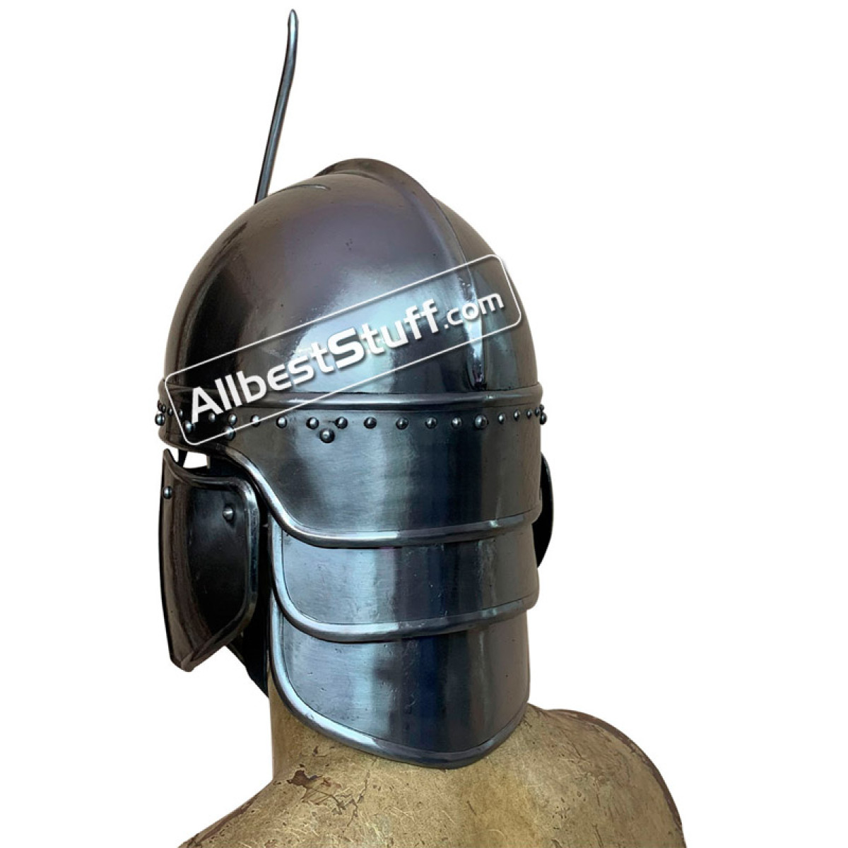 Famous Medieval Ancient Leonidas Roman Spartan Crusader Costume Helmet . Hand made 18 Gauge Steel product in Steel finish.