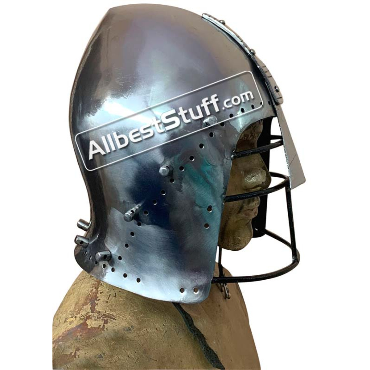 This Helmet best for buhurt and Armored combat tournaments with full protection part on the head & nose. The development to full visor had not occurred yet and would see the addition of a nasal guard later before the visored bascinet came into popularity. Custom bascinet - SCA fighting helm for reenactment. Medieval armor costume.The Original of this battle-ready replica of a bassinet helmet without visor dates in the middle of the 14th century. Standard Adult Size fully wearable.