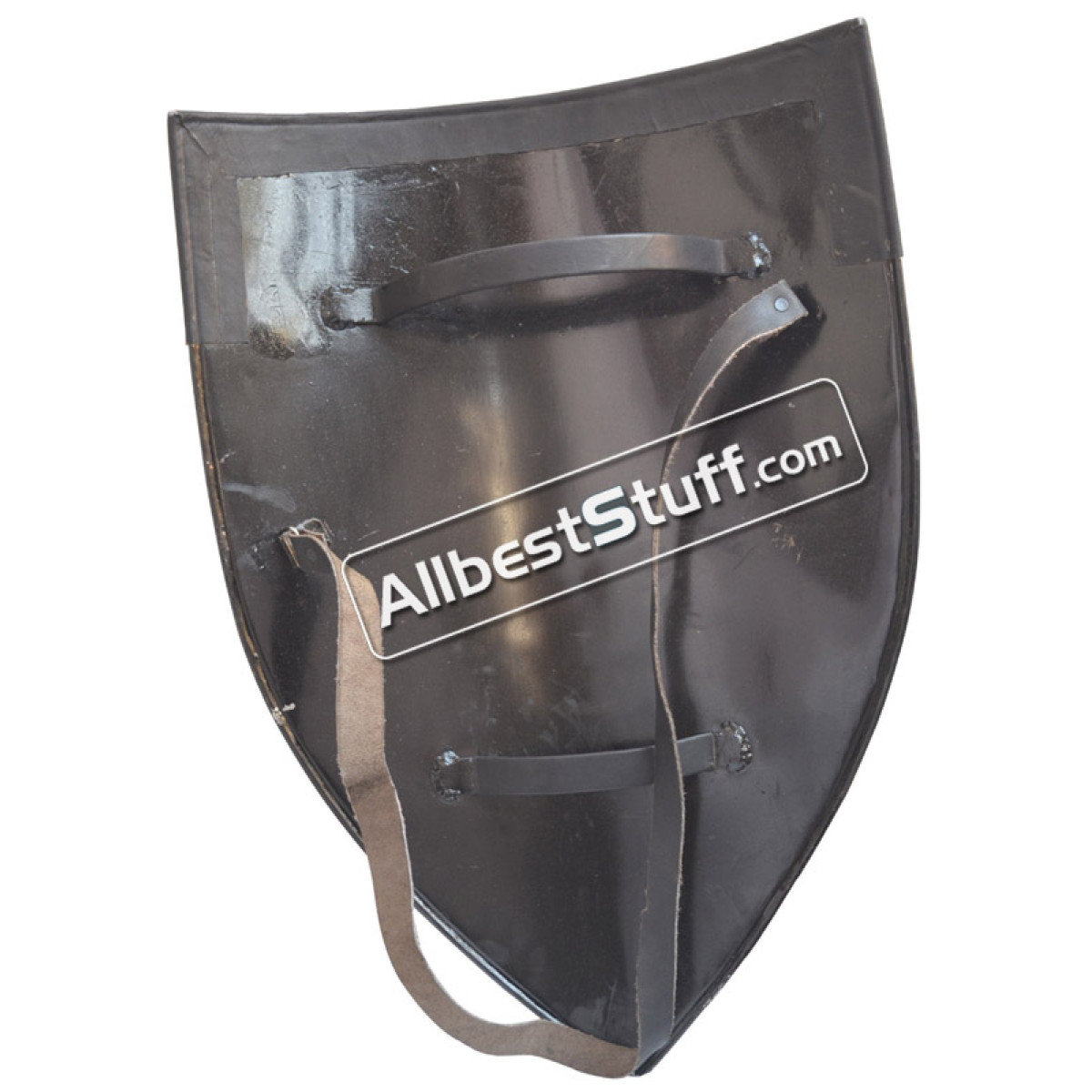 Large size Metal shield that protects against enemy blows. Black Leather covering 6 inches height on top portion of the shield. Entire shield beneath is of Buff finish. 02 handles for better grip along with leather shoulder belt 38 inches long.