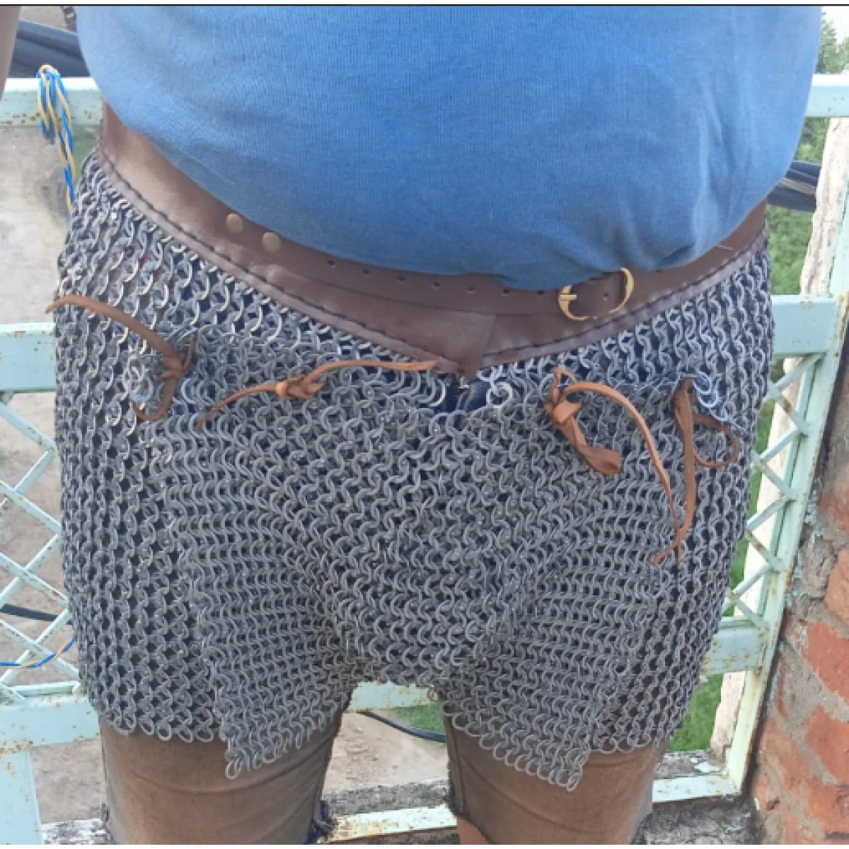 This 15th-century chainmail brayette is a historically inspired piece of late medieval groin protection, crafted for durability, authenticity, and long-term wear. Traditionally worn by knights and men-at-arms, the brayette was attached to a belt, mail skirt, or arming points as part of a complete harness.Handmade from stainless steel flat riveted rings, this brayette features a European 4-in-1 weave using 18-gauge wire with 9 mm internal diameter rings, providing an excellent balance of strength, flexibility, and corrosion resistance. The articulated mail construction allows natural movement while maintaining reliable protection.