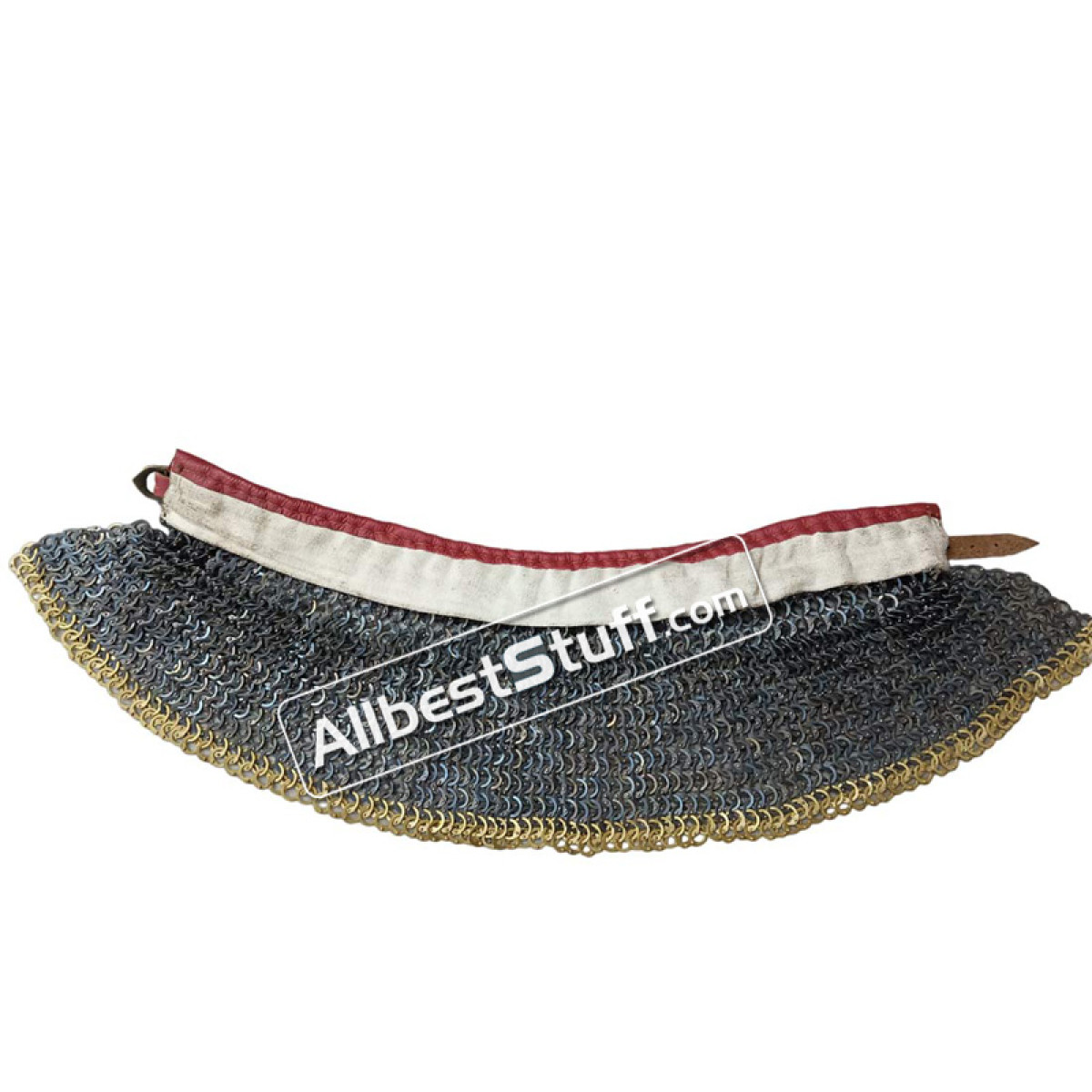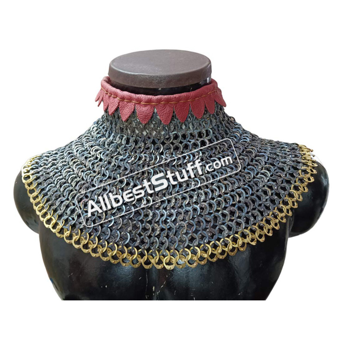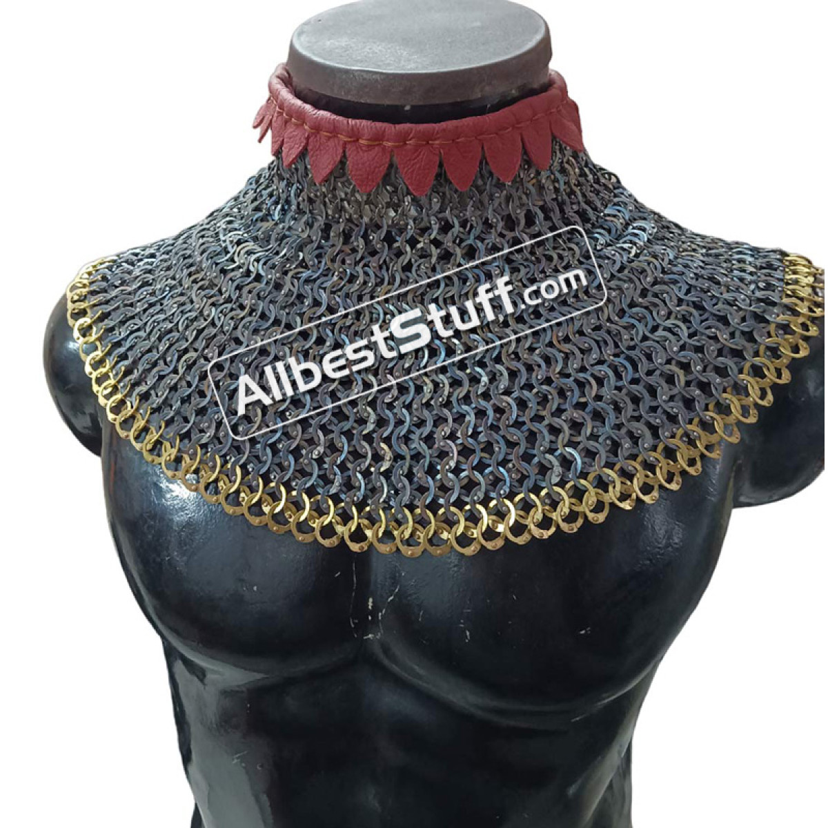 Titanium 9 MM maille collar with high neck collar. Linen padding for neck protection. Single Brass buckle with leather fastener to cover the neck area. Zig Zag OR Plain design at the bottom Optional.