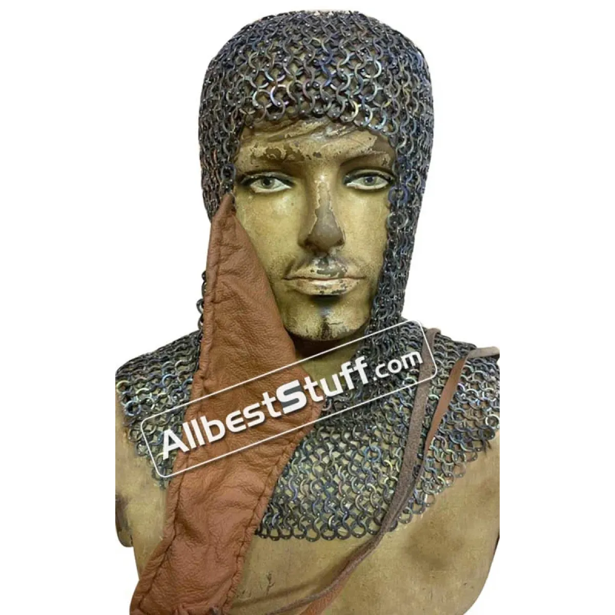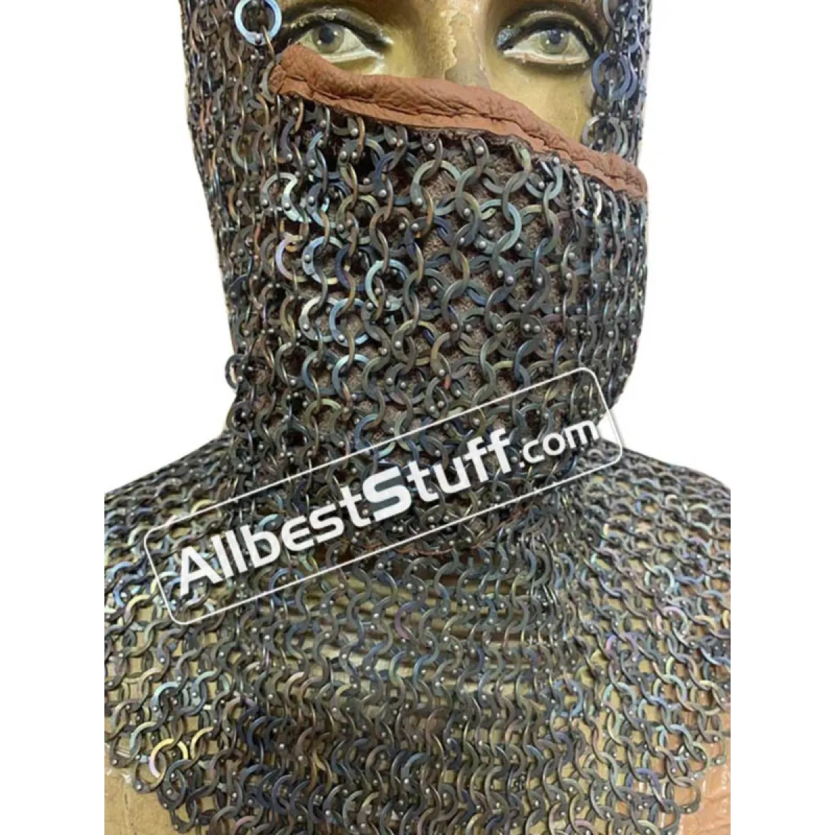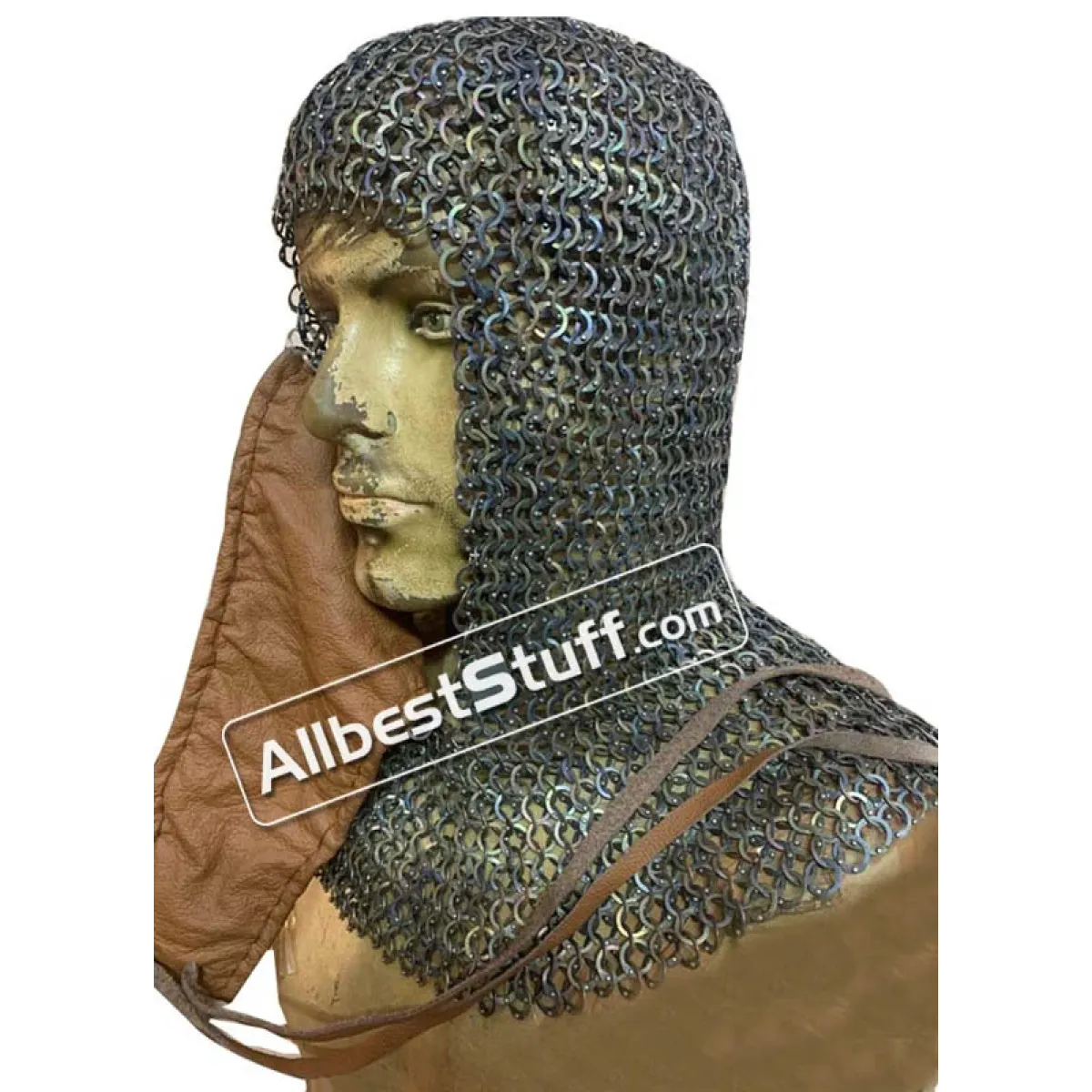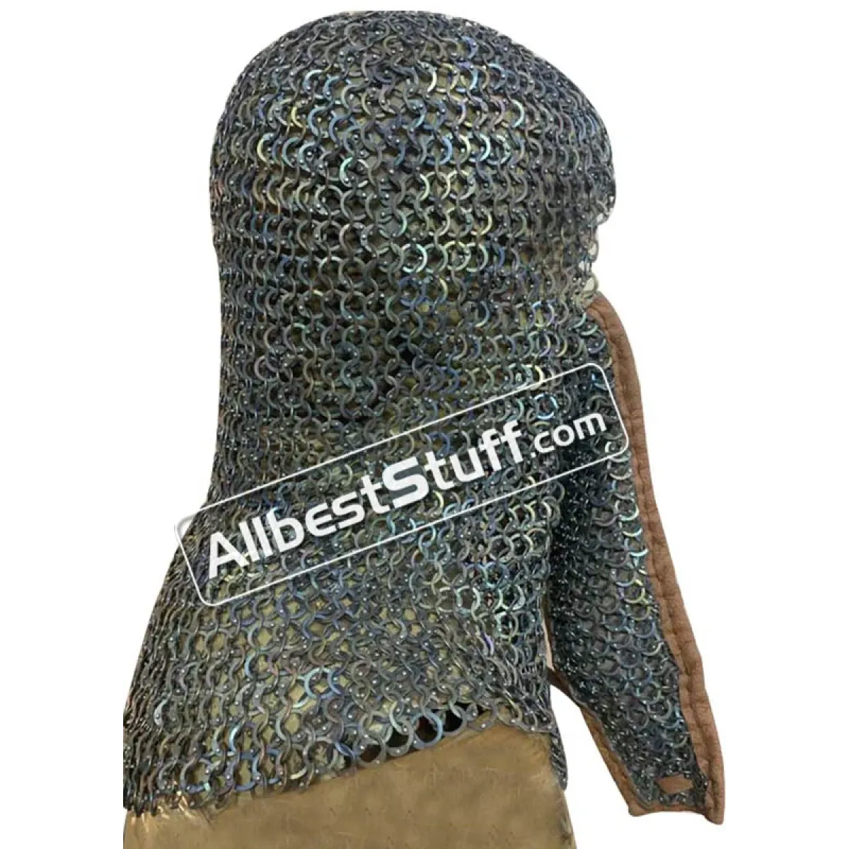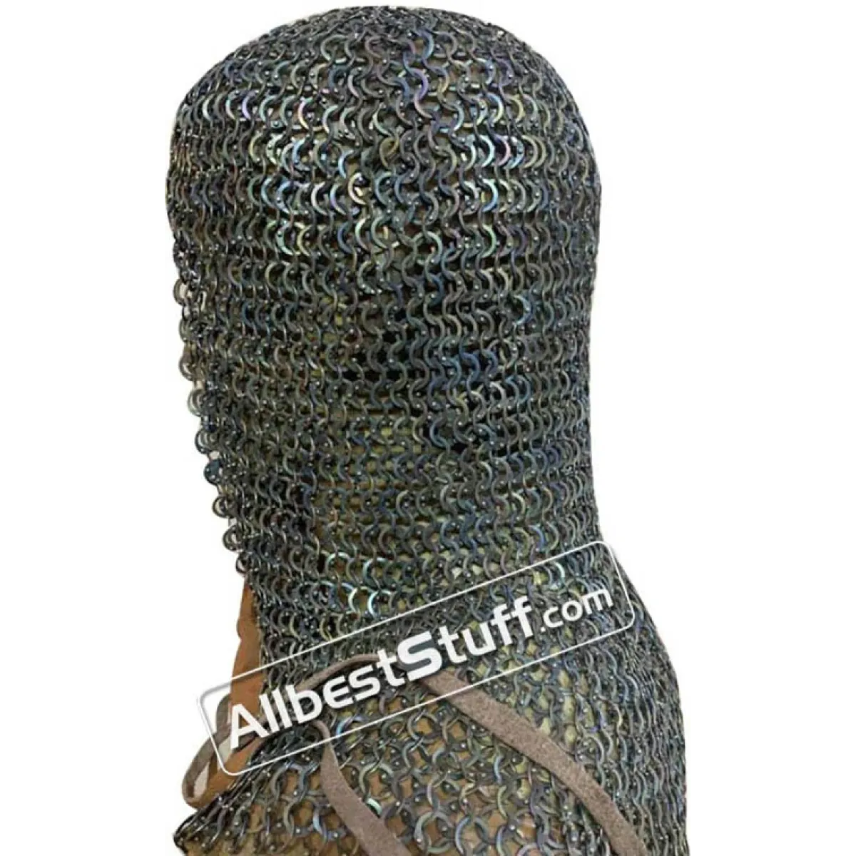 Key Features:Ring Size:18 Gauge 9 MM, All Rings are Flat, All Rings are Dome Pin RivetedWeave Type: European 4 in 1 Flat RivetedMaterial: Made from Titanium WireItem Type: Chain Mail Hood with Side ventail Coif