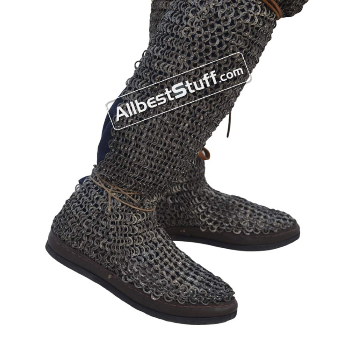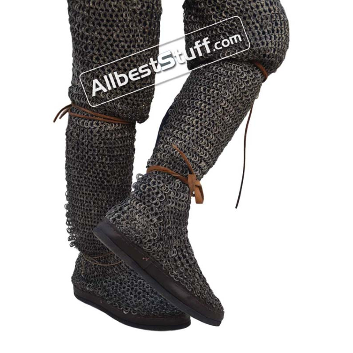Key Features:Ring Size:18 Gauge 9 MM, Titanium Full Flat Dome Riveted ChaussesWeave Type: European 4 in 1 Material: Made from Titanium WireDimension of Chain Mail ChaussesOverall Length from where you tie your belt to ankle(Outer Seam): 42 InchInseam : 31 inchesCircumference at Top (thigh): 26 InchBottom circumference (Ankle) - 12 inches Leather flaps at front side of the legthread to tie with belt Back slit 10 inches at back bottomChausses Finish: Original TitaniumSole Type: RubberShoe Size : Choose from additional options