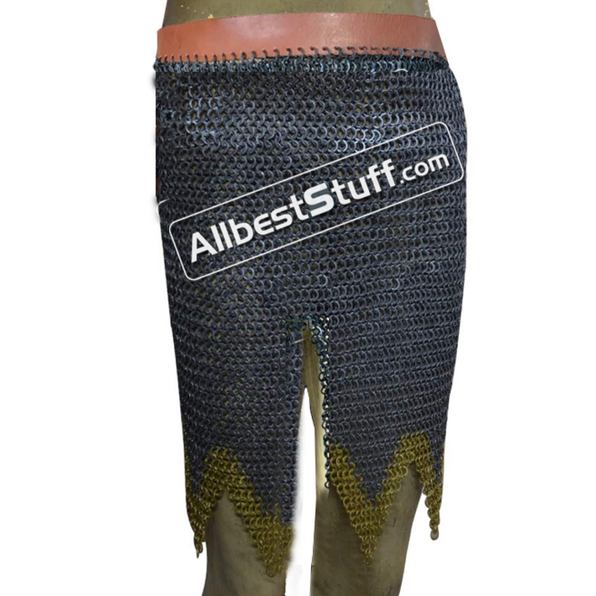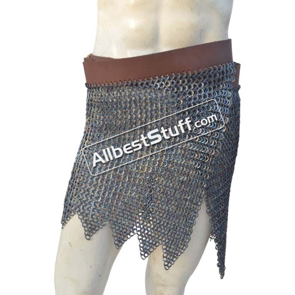 LARP armor Skirt made from solid Titanium wire, punched with pin rivets this titanium maille sheet is riveted to a genuine leather belt which cater for any waist size. Brown color belt with solid brass buckle, bottom slit is optional as per customer requirement.