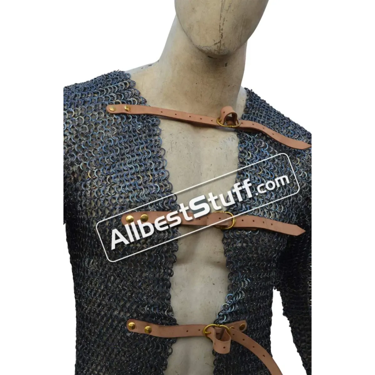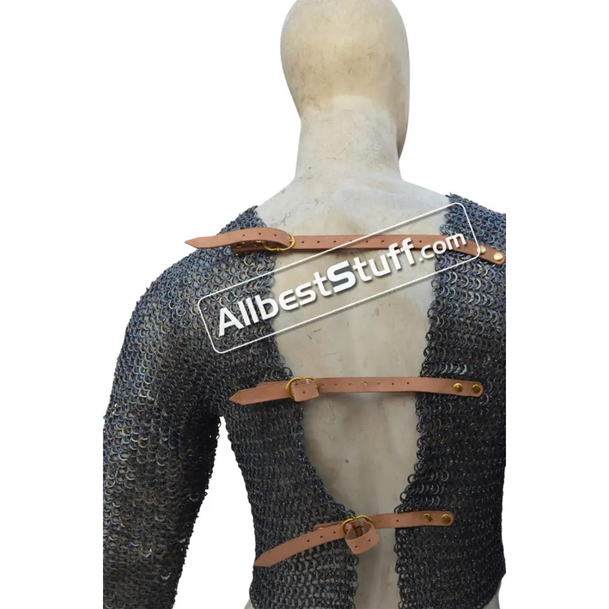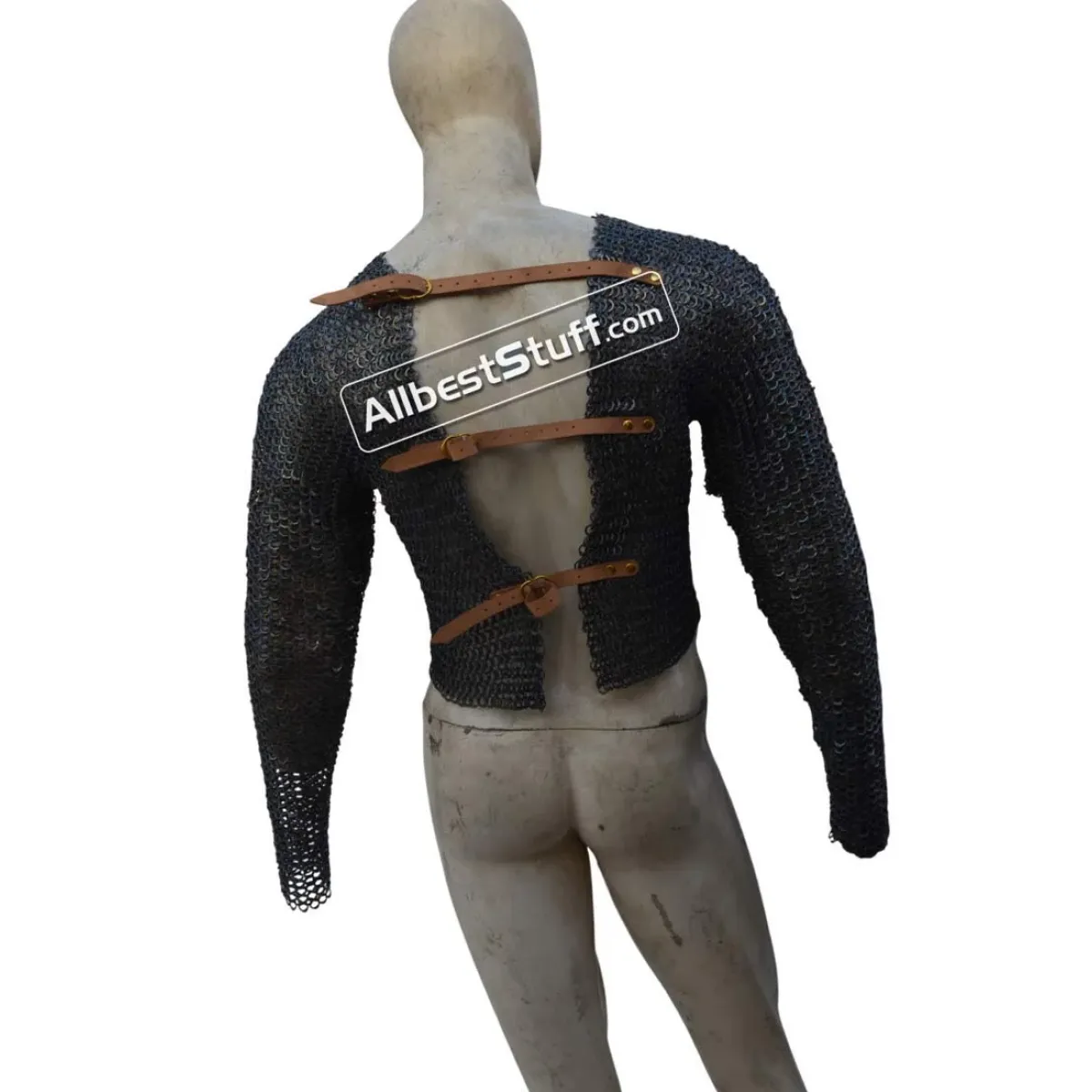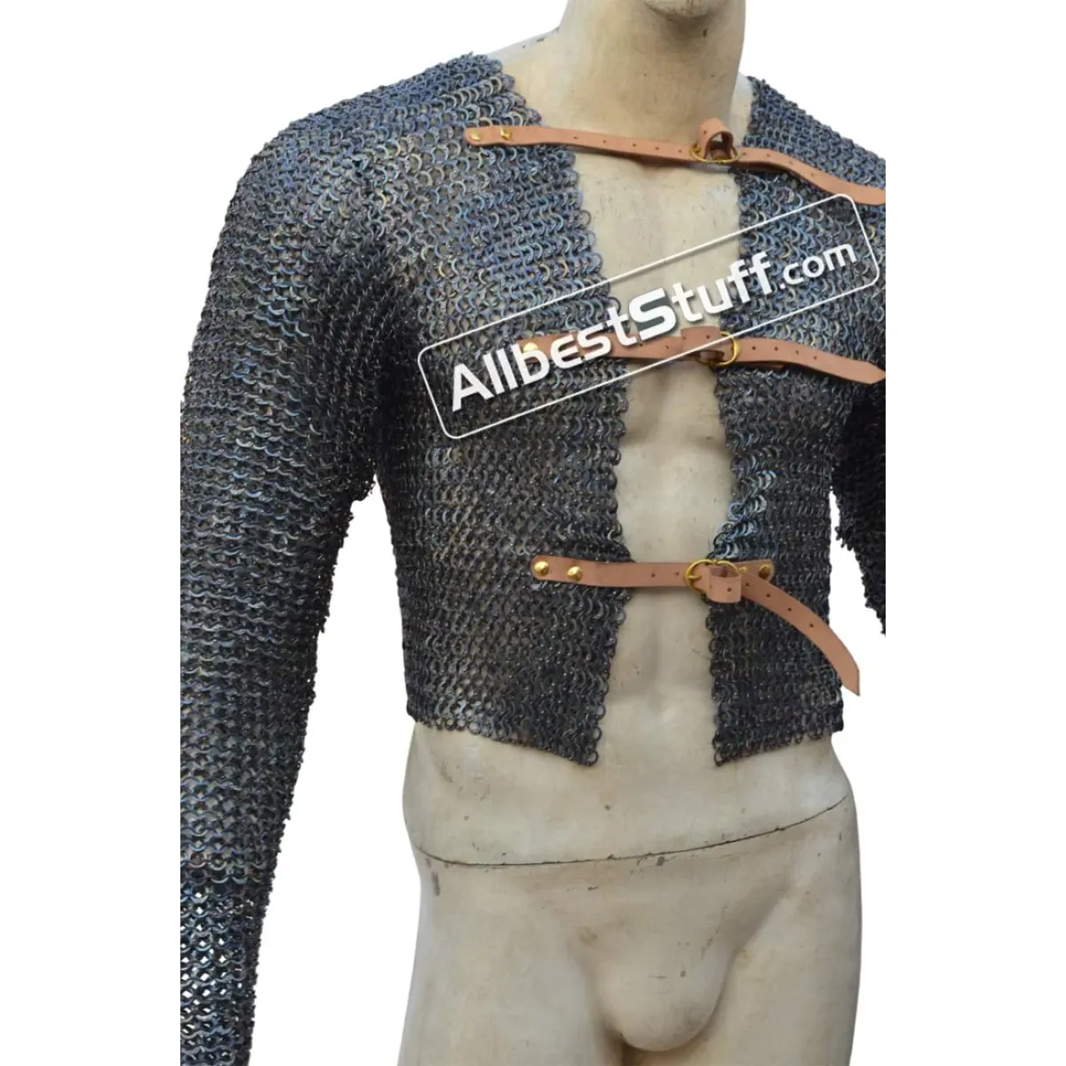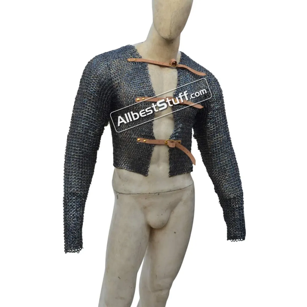 Material: Made from Titanium WireRing Type: 18 Gauge 9 MM Full Flat Dome RivetedChest Size: 30-35 inches, the 2 pieces will give approx 8-9 inches of chest and back coverage on each side03 Nos Leather fasteners to close the frontSleeve Style: Fully ClosedLength of Sleeve: 22 inches measured from under the armpit area to wristSleeve Circumference at Armpit: 20 inches (Default) choose preferred circumference from additional optionsOverall Length from Shoulder: 20 inchesFinish: Original Titanium