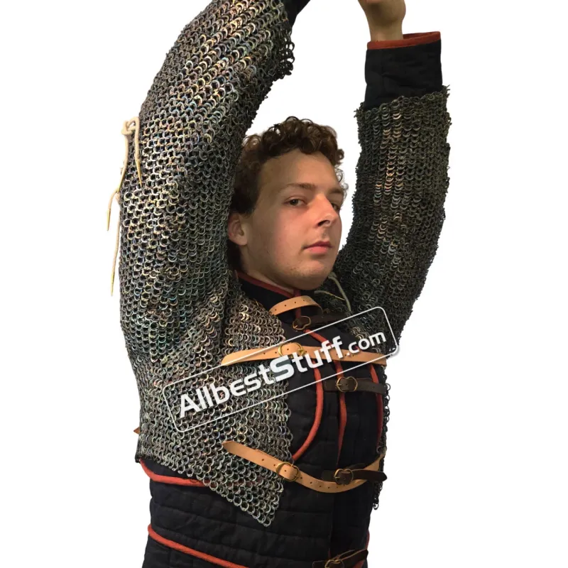 9 MM maille voider to be worn along with plate armor. Made with Titanium in flat dome riveted ring all riveted rings. Titanium has more strength then regular Maille and less worry of getting rusted.