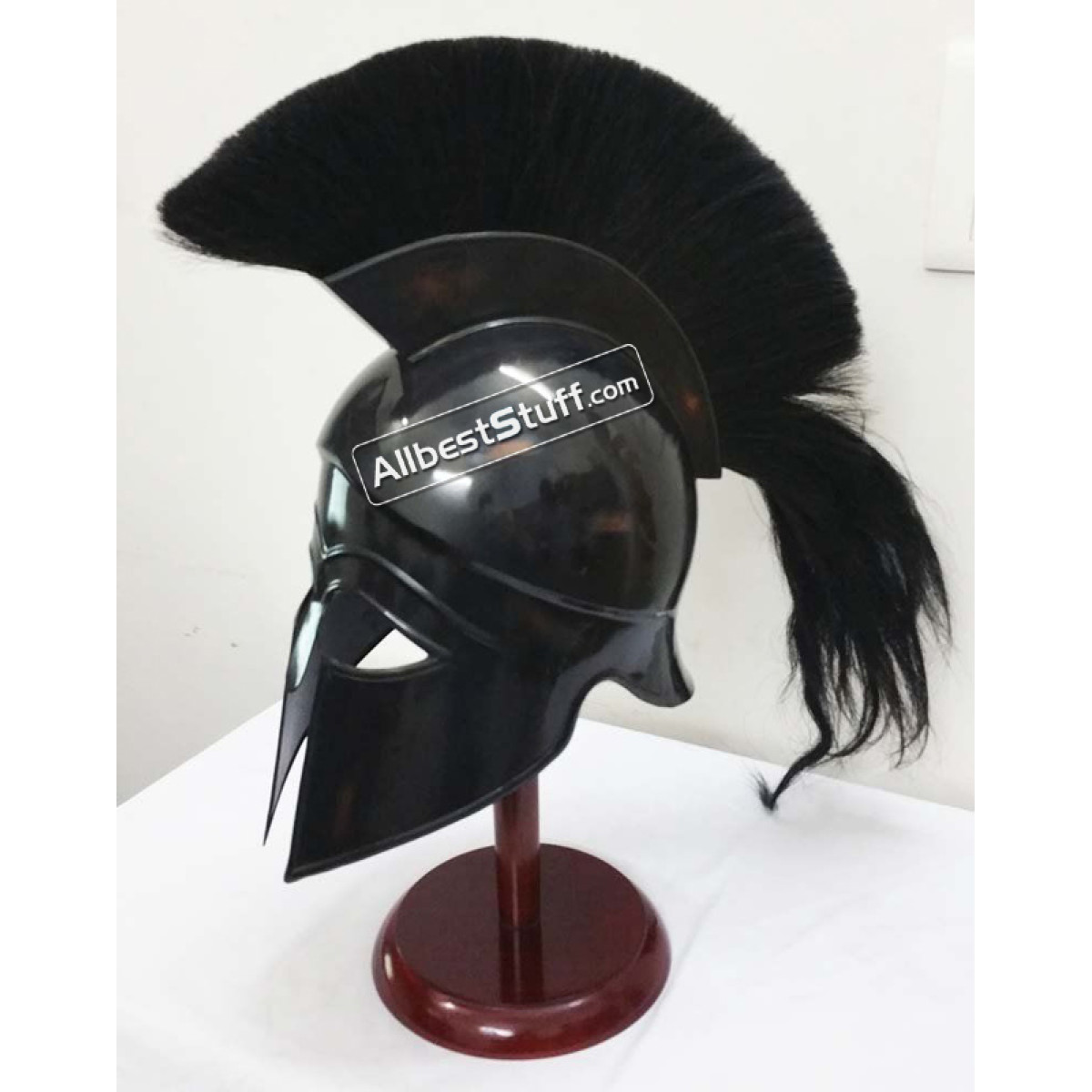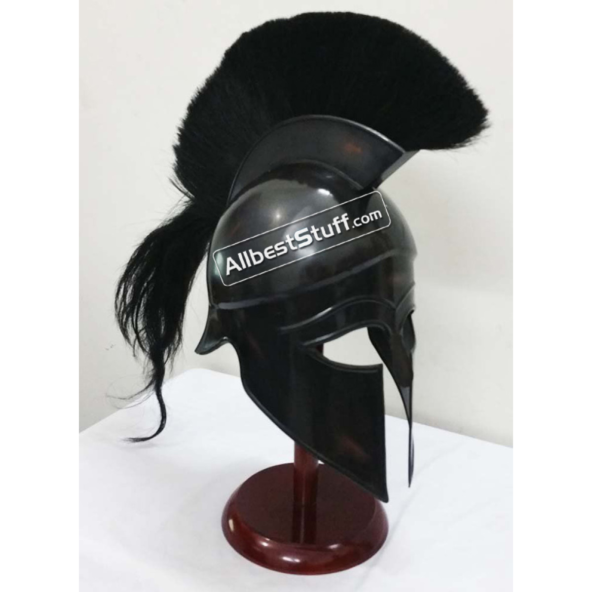 Hand Made Corinthian Helmet High quality. The most popular among all Greek helmets and comes with variety of plume options. We are offering here polished steel in black finish with Black plume. Standard Adult Size fully wearable.