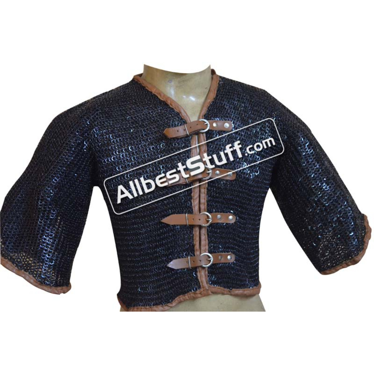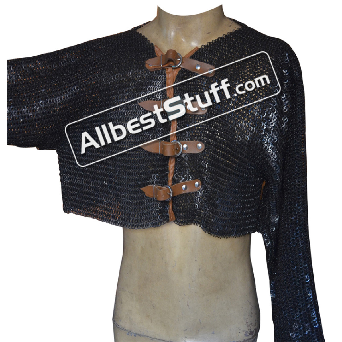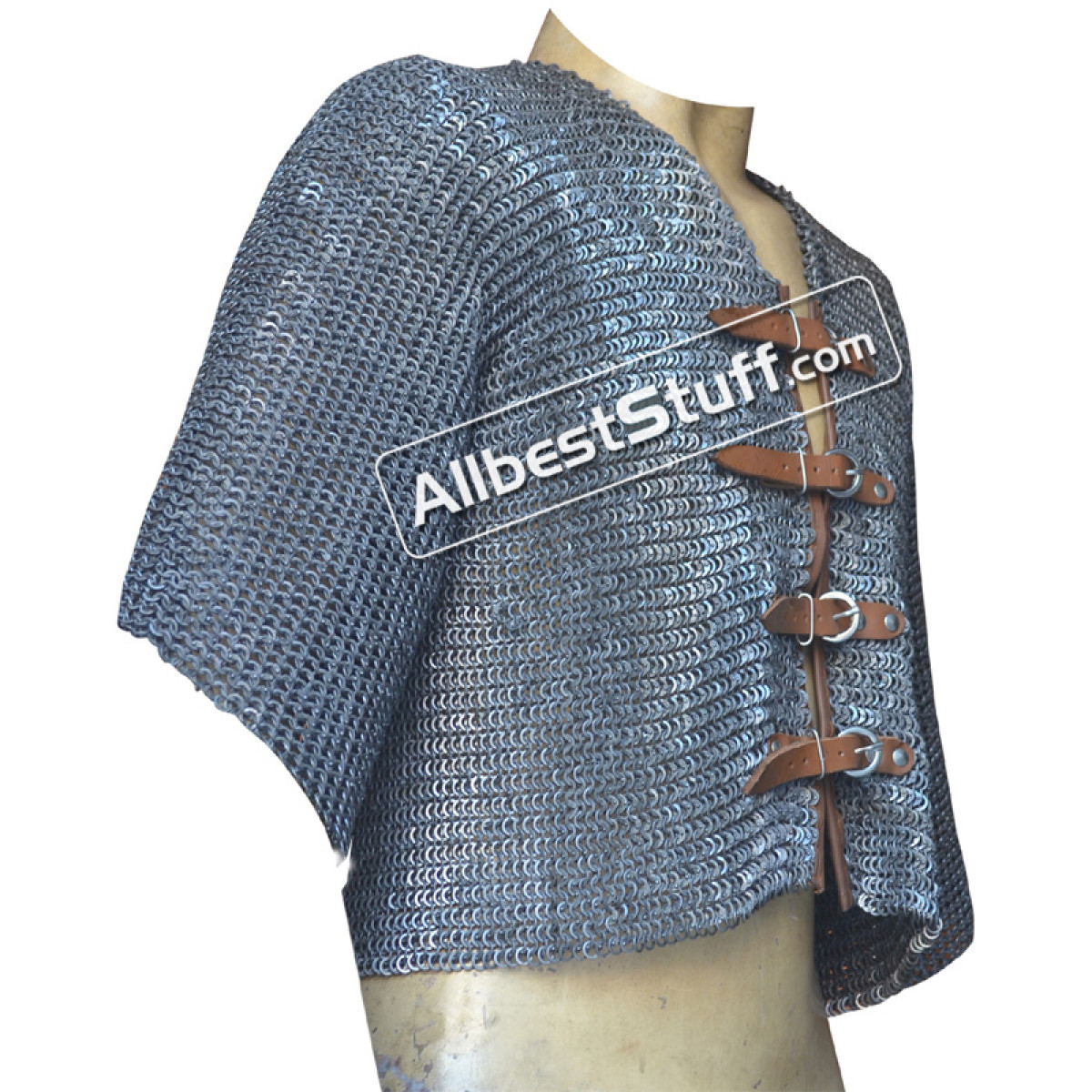 Specifications:Ring Type: 18 Gauge 6 MM Flat Dome Riveted Ring with alternating solid ringMaterial: Made from Mild Steel WireChest Size: 44 inches, comfortable fit for 40 inches with padding underneath04 Nos Leather fasteners to close the front.Sleeve Style: Fully ClosedLength of Sleeve: 10 inchesSleeve Circumference at Armpit: 20 inchesOverall Length from Shoulder: 18 inchesCut at the back will be adjusted and may vary as per the overall chest circumferenceFinish: 02 Finish to choose from
