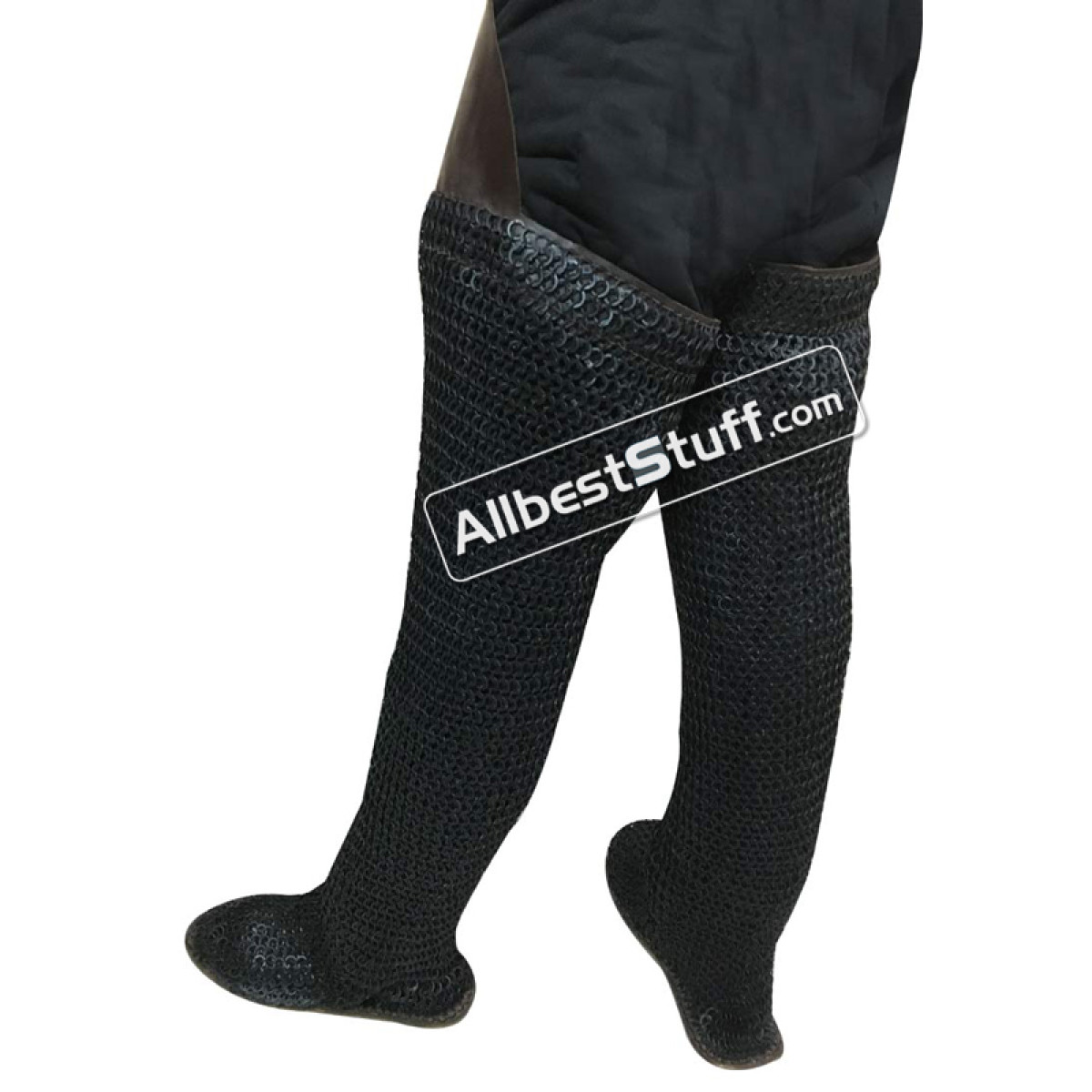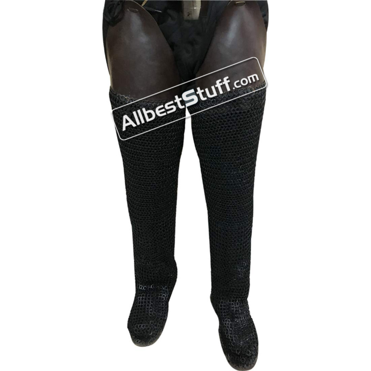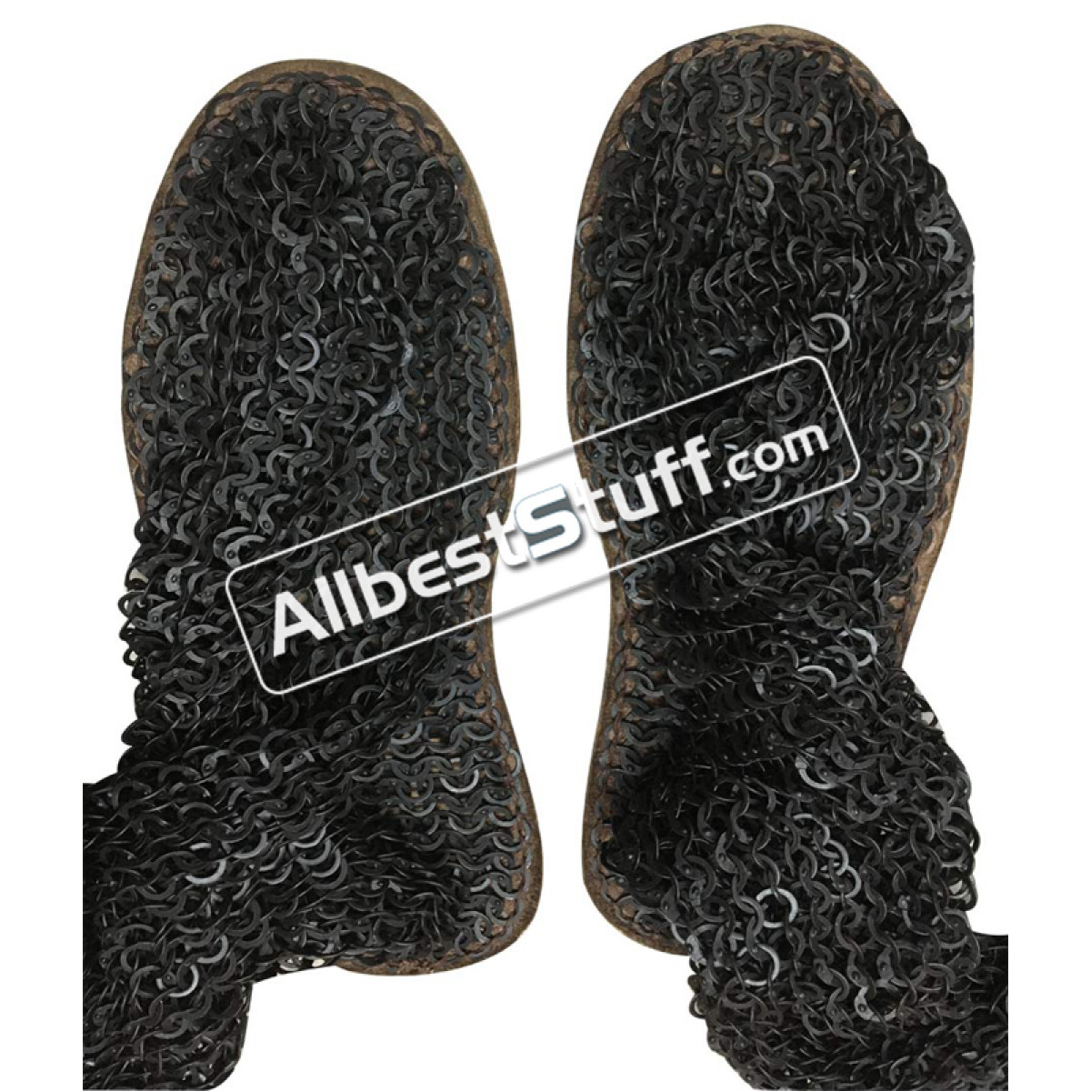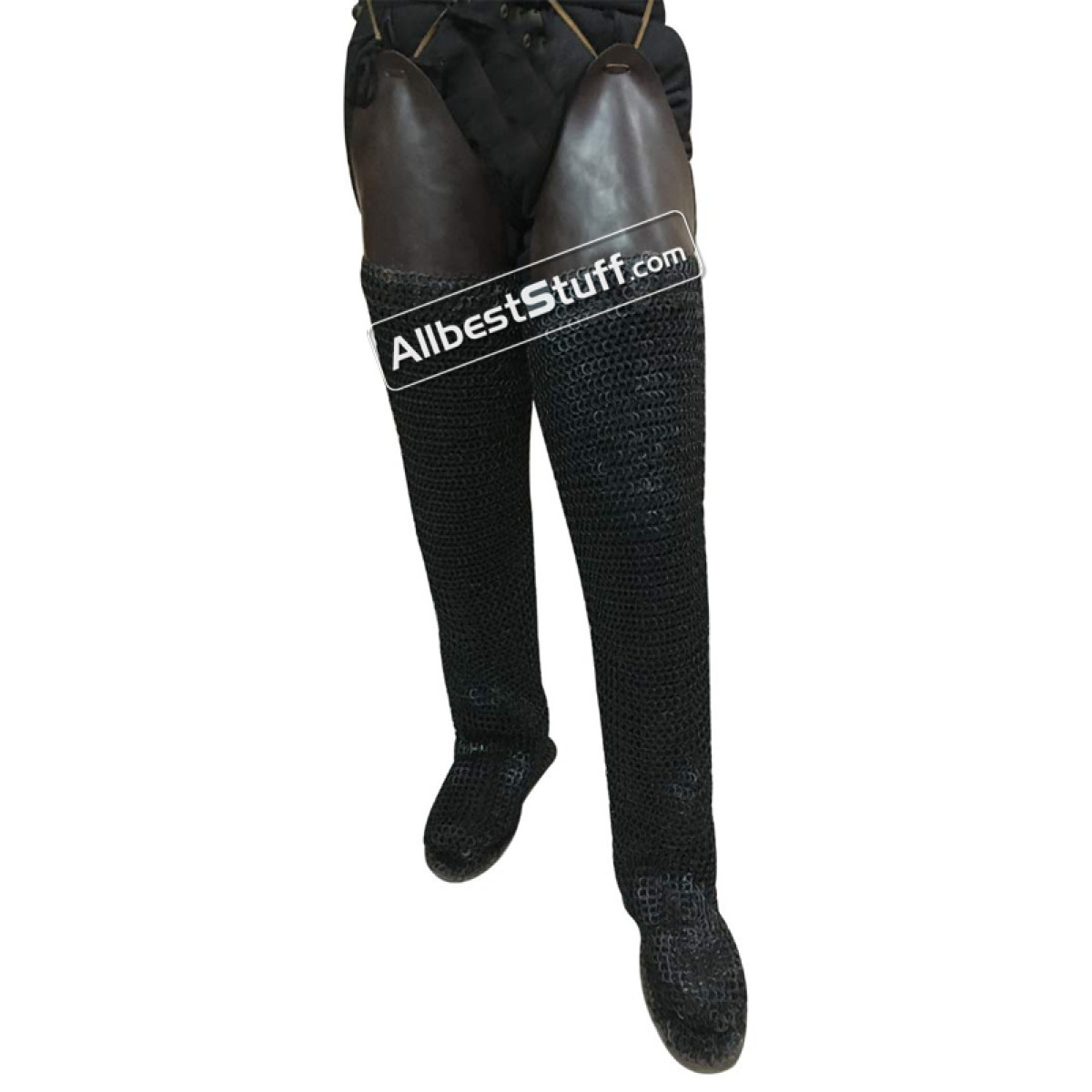 Key Features:Ring Size:18 Gauge 9 MM, One Flat Wedge Riveted Ring Alternating Flat Solid RingWeave Type: European 4 in 1 Material: Made from Steel WireDimension of Chain Mail ChaussesLeather Height on top as per photo : 10 InchOverall Length from Top (thigh/inseam) to ankle: 32 InchCircumference at Top (thigh): 26 InchCircumference at Ankle: 18 InchMaille Socks with Leather sole : 12.5 inch (** Can be adjusted according to need)Leather Color : Brown